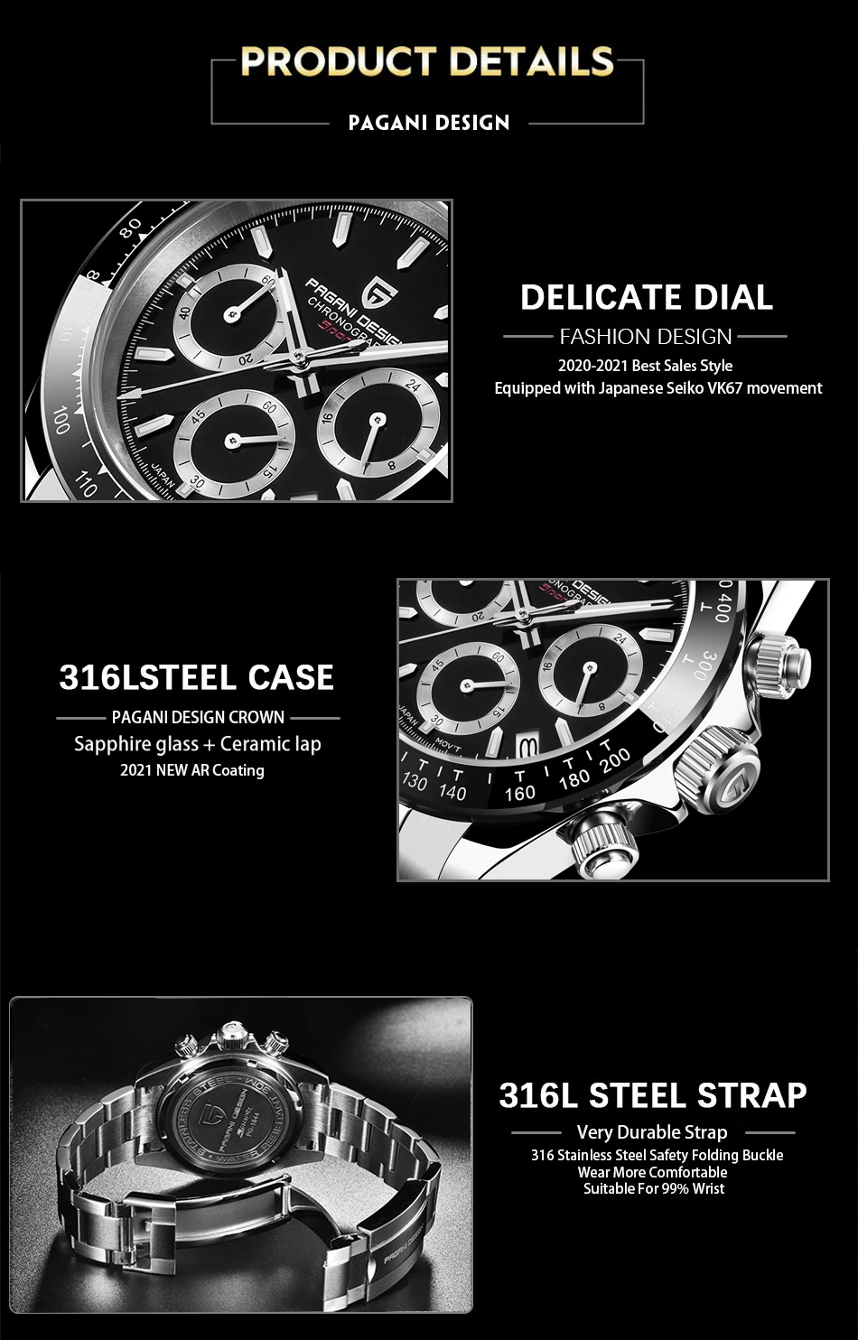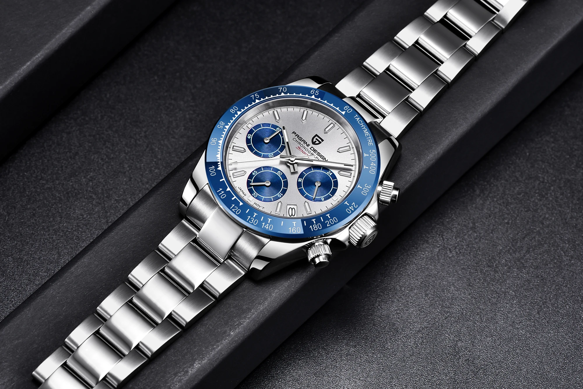 Часы наручные PAGANI Мужские кварцевые, спортивные водонепроницаемые светящиеся люксовые брендовые, с браслетом из нержавеющей стали