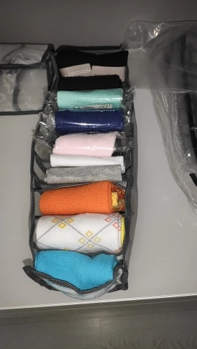Идеально, как на фото. Это очень полезно для организации ящиков. Единственным недостатком является то, что ткань немного грубее, чем у других, которые у меня есть.