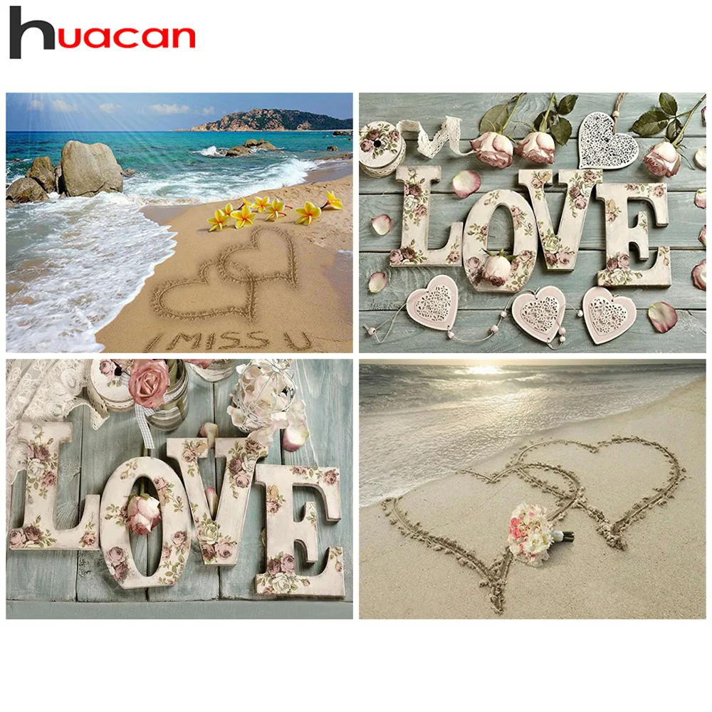 Набор для алмазной живописи Huacan, мозаика с мотивом любви, Пляжное сердце, домашний декор, вышивка, морской пейзаж, настенные наклейки