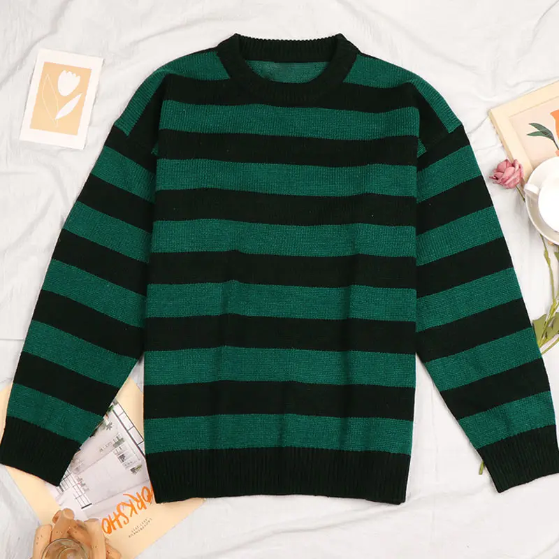 Женский полосатый джемпер с круглым вырезом, в стиле оверсайз