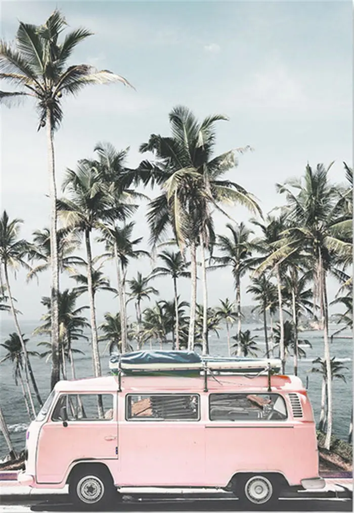 Настенная картина розового цвета с изображением пляжа, ананаса, гам...