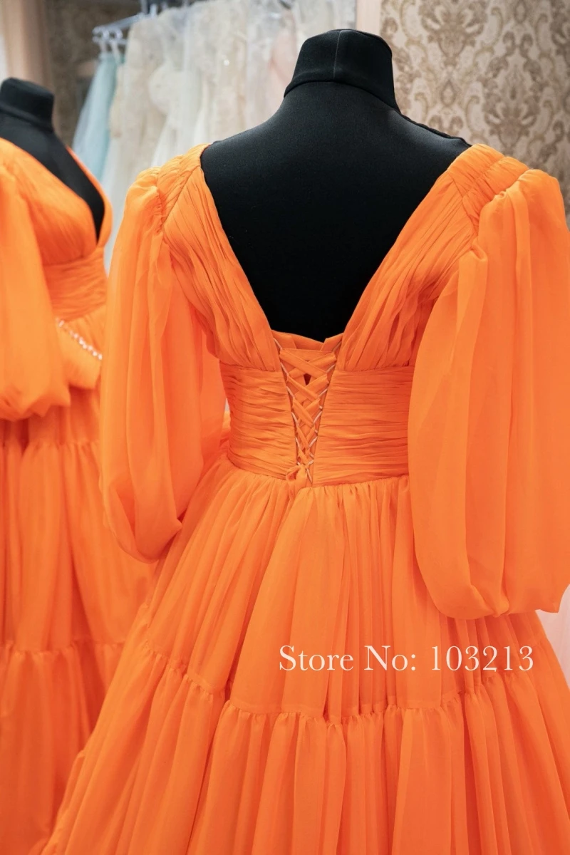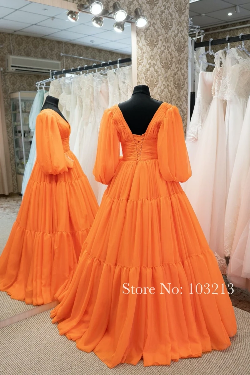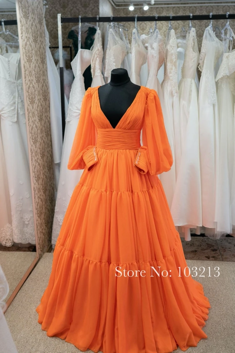 Оранжевые шифоновые вечерние платья-трапеции, с длинными рукавами, с V-образным вырезом, для рождества, вечеринки, макси, дня рождения, 2021