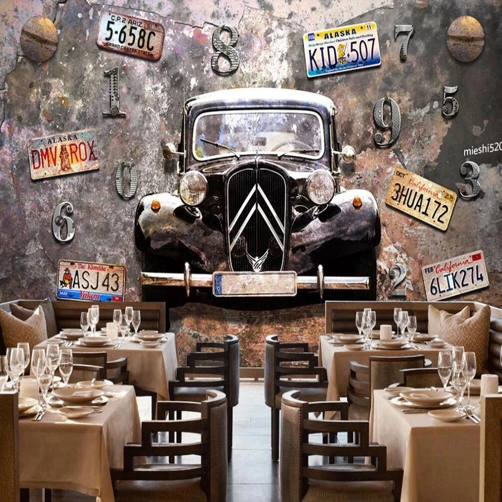 Пользовательские 3D фрески Ретро ржавчина Винтаж автомобильный номерной знак рабочие фон украшения стен самоклеющиеся обои водостойкие