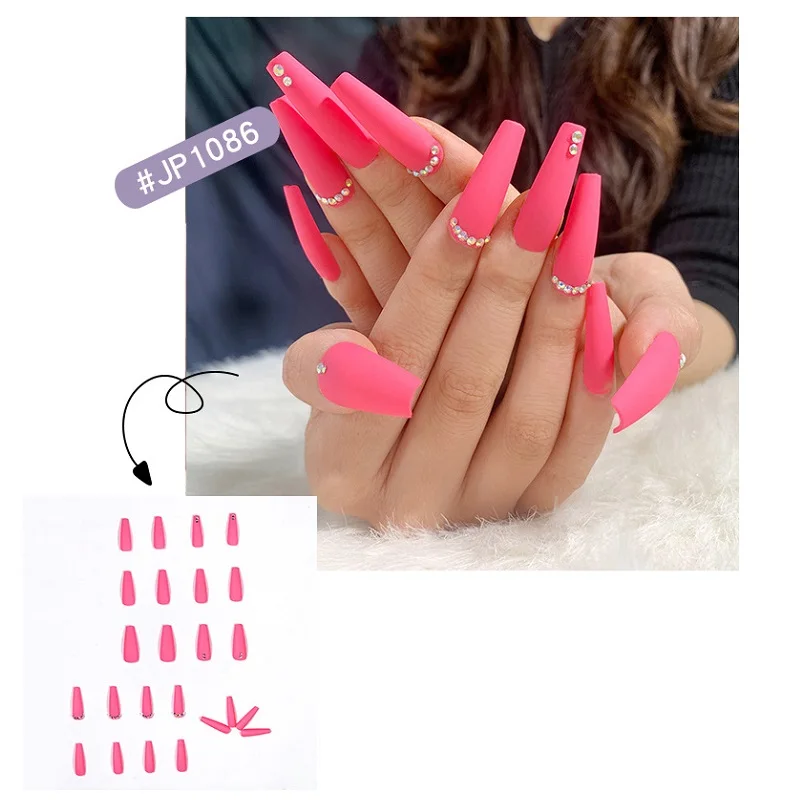 GAM-BELLE 24 шт розовые накладные ногти длинный гроб глянцевые полностью Стразы искусственные пластмассовые накладные ногти Декор Маникюрный ИнструментОсобенности:12 различных размеров для разных пальцев, 2 наконечника для каждого размера.Для профессионального наращивания ногтей и французского маникюра.Легко использовать с клеем для ногтей или желе двухсторонние клейкие ленты.Легко обрезать и прикрепить их к любой длине и форме, которые вам нравятся.Logn гроб розовые накладные ногти Типсы со стразамиМатериал: АБС-пластикСтиль: накладные ногти с полным покрытиемПакет включает в себя: 24 шт./компл. накладные ногти + 1 мл клей для ногтейСоветы по использованию:1. Вырезайте, напиливайте и формируйте собственные ногти.2. Очистите свой собственный ноготь.3. Выберите подходящий кончик, сравняя ширину вашего естественного ногтя.4. Приклейте наконечник на ногтевую пластину.5. Выровняйте и формируйте кончик.6. Начните применять УФ-гель или лак для ногтей.