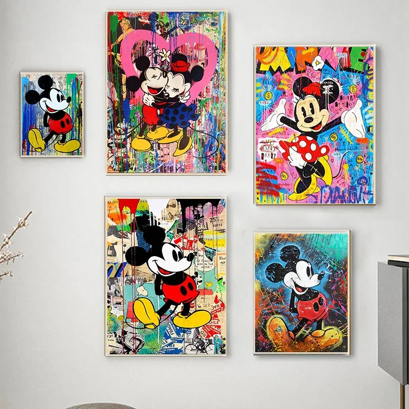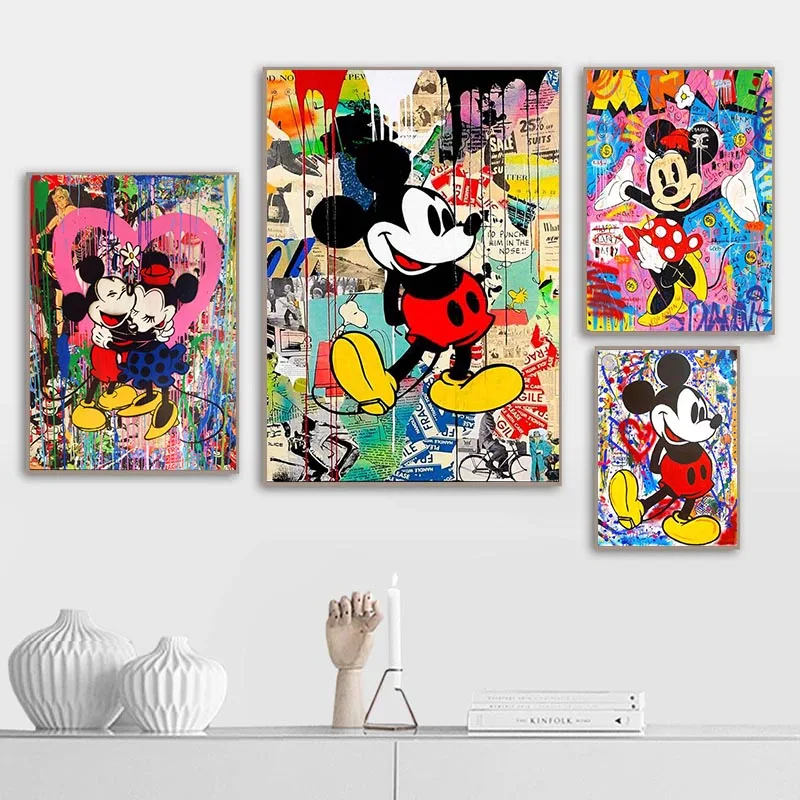 Настенная картина абстрактный Микки Маус, постеры и принты на холсте в скандинавском стиле, декор для гостиной