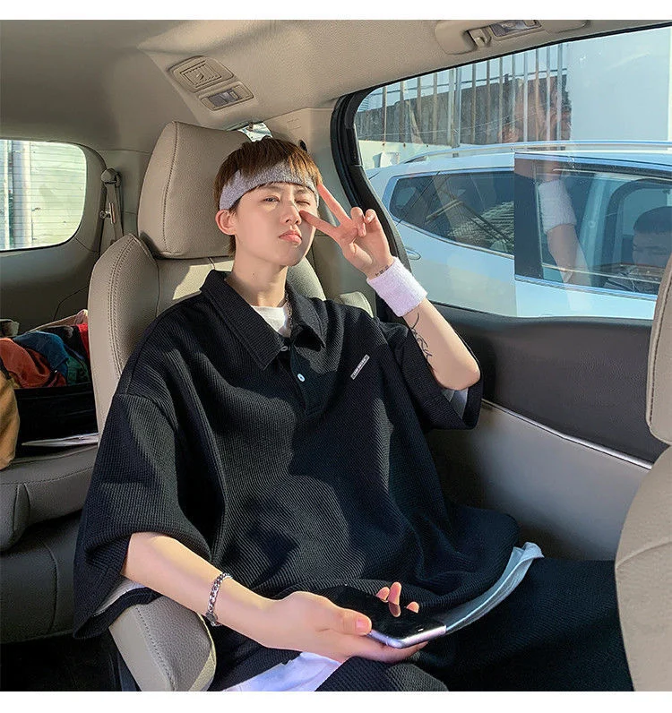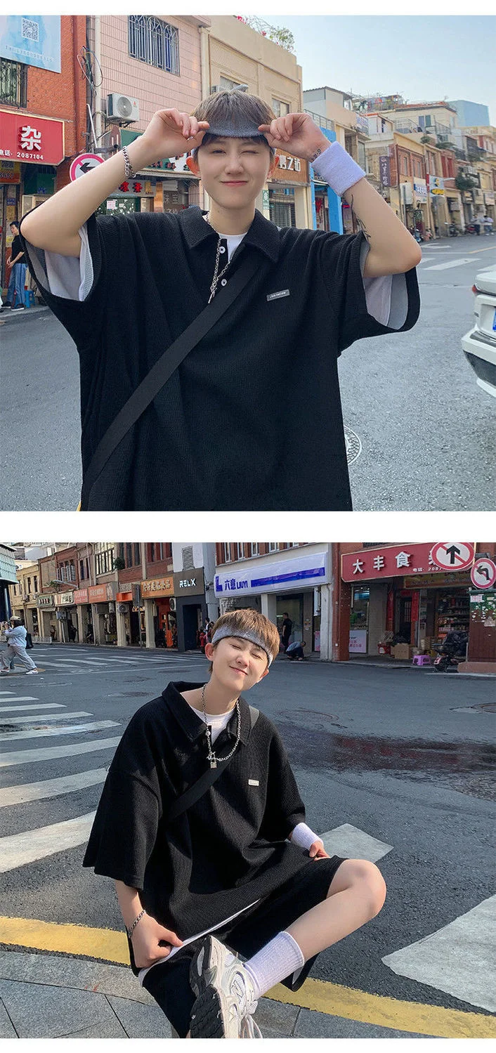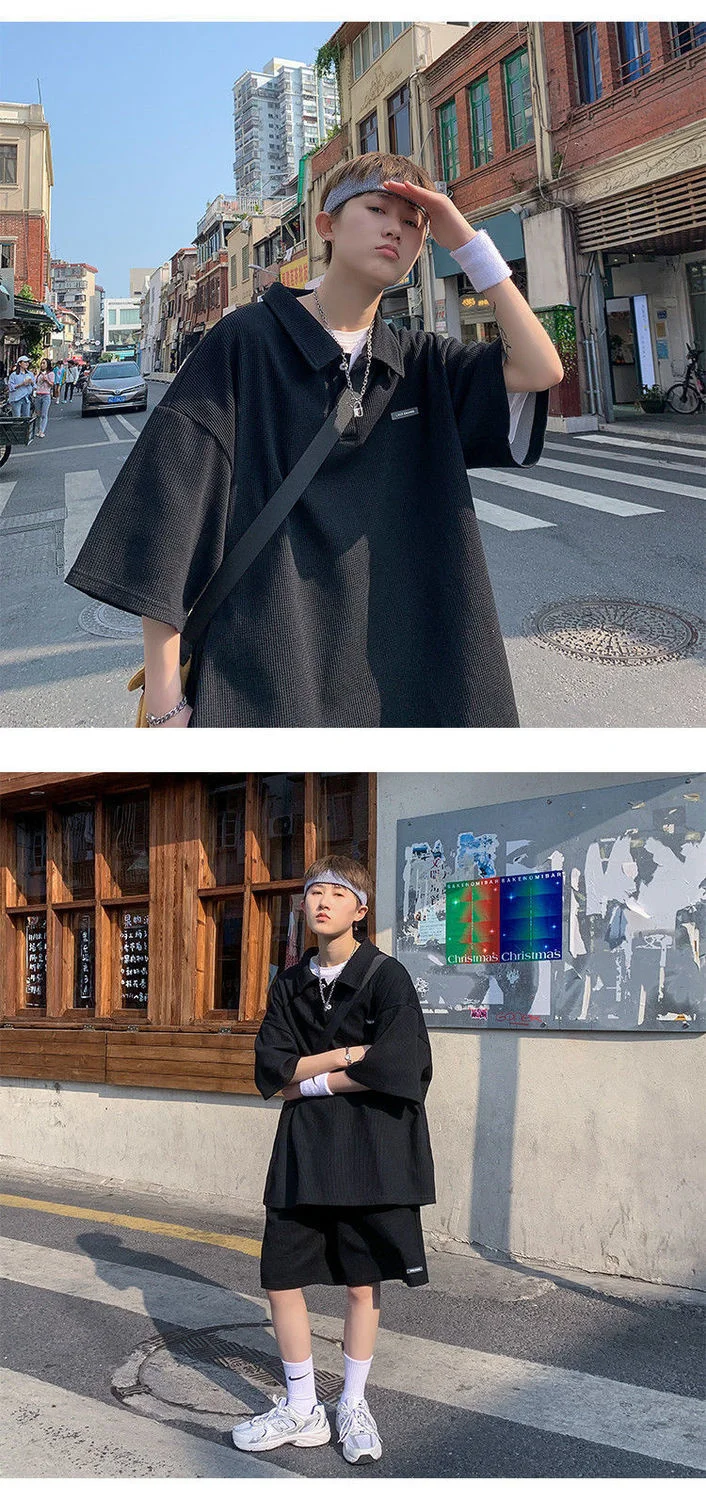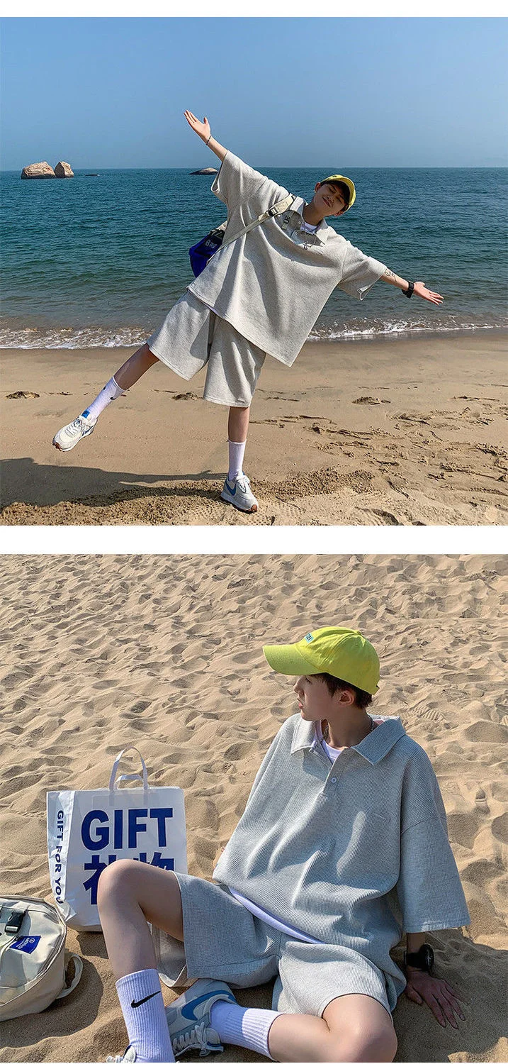 Летний костюм для мужчин и женщин, Корейская трендовая рубашка-поло...