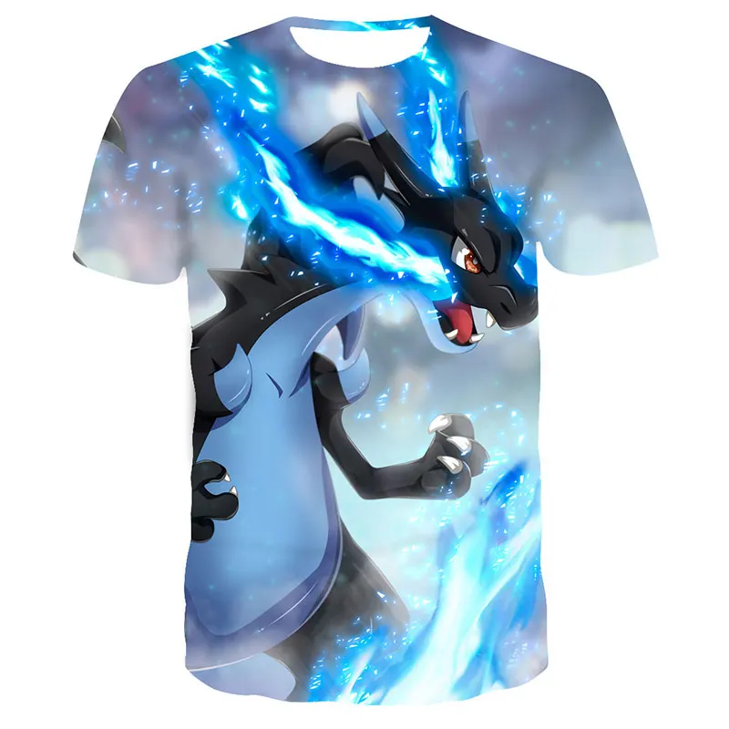Детская летняя одежда с забавным мультяшным 3D-принтом покемона, с коротким рукавом, дышащая, с круглым вырезом, крутые футболки