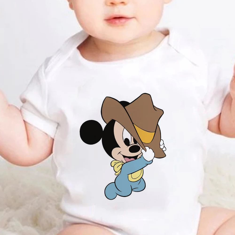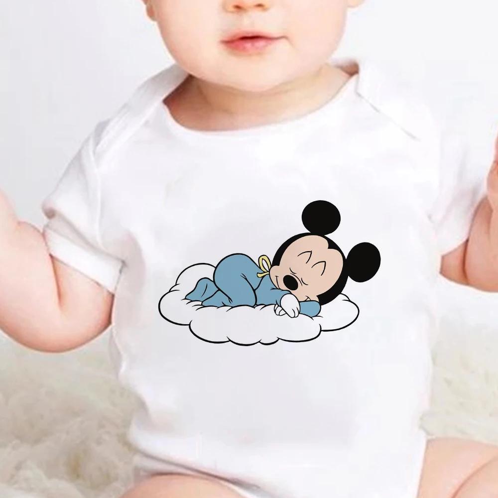 Disney Детские коврик для мыши с принтом Микки Маус, комбинезон с короткими рукавами и О-образным вырезом, для девочек и мальчиков, одежда для младенцев, Мода для детей, начинающих ходить