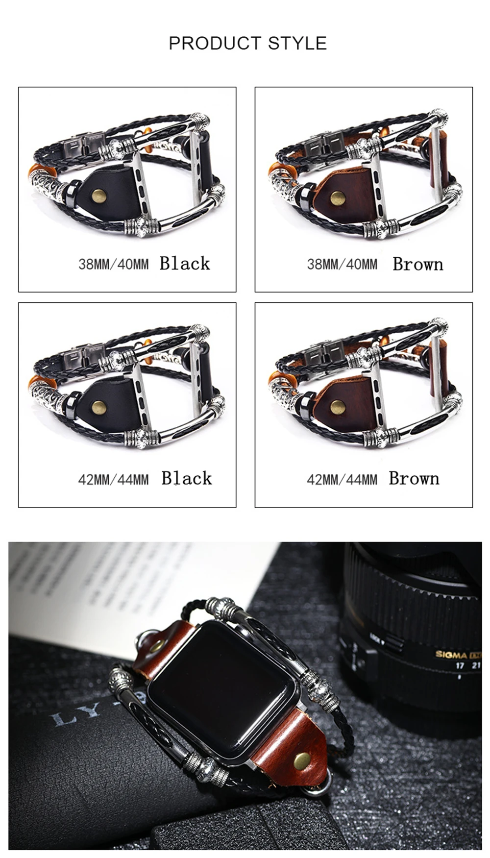 Винтажный кожаный браслет с бусинами Kirykle для Apple Watch серии ...