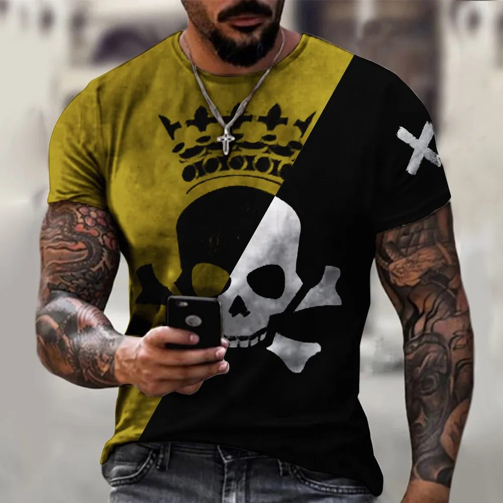 Мужская футболка с коротким рукавом, принтом розового сердца, короной и черепом