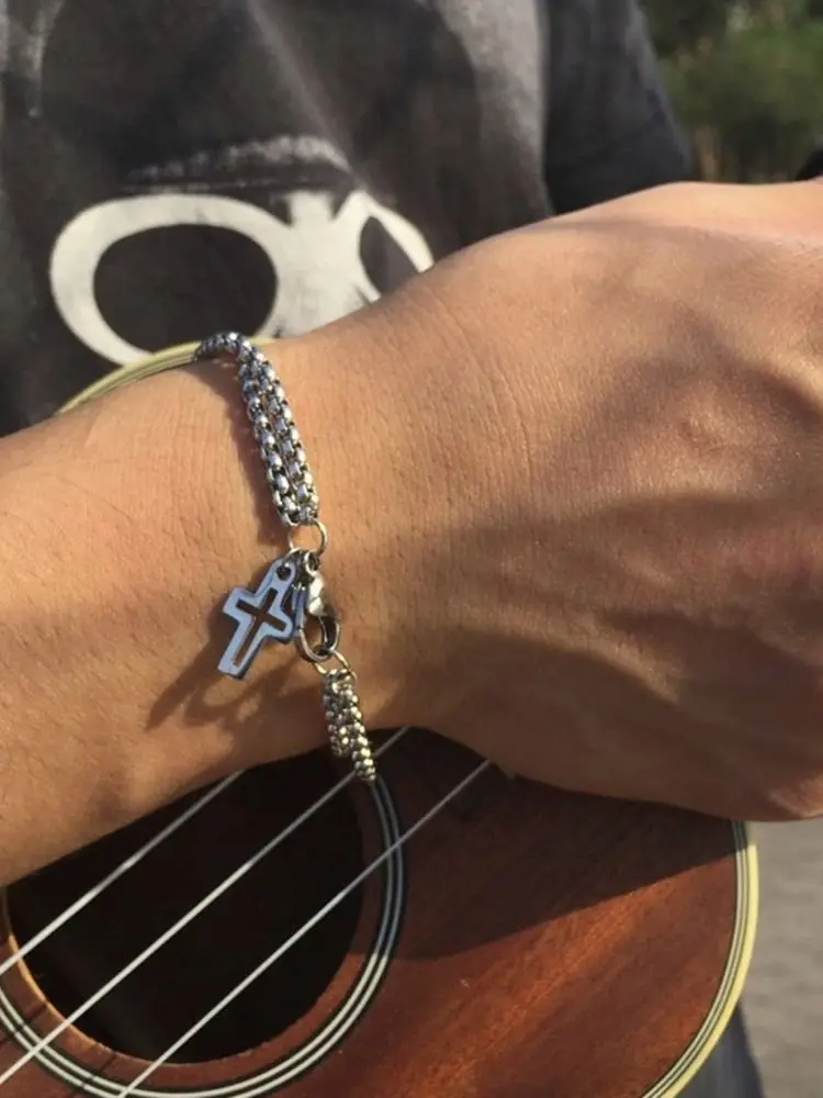 Браслет с шармами-крестиками из нержавеющей стали для мужчин и женщин