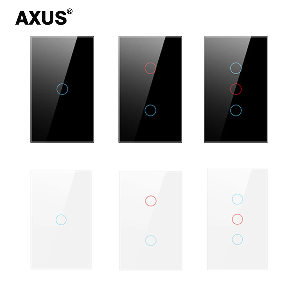 AXUS нам сенсорный выключатель Мощность Led Панель настенный светильник переключатель из каленого черный, белый цвет с украшением в виде кристаллов Стекло 123 банды выключатель AC110-240V