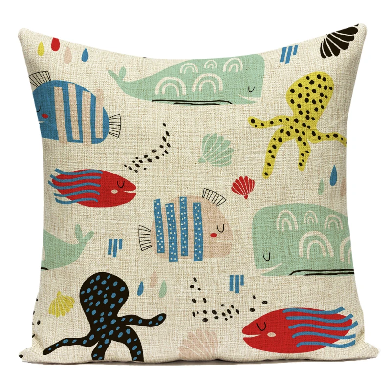 Чехол для подушки с изображением лесных животных морских пейзажей, медведя, лисы, чехол для подушки, декоративный чехол для стула, дивана, домашний декор, чехол для подушки