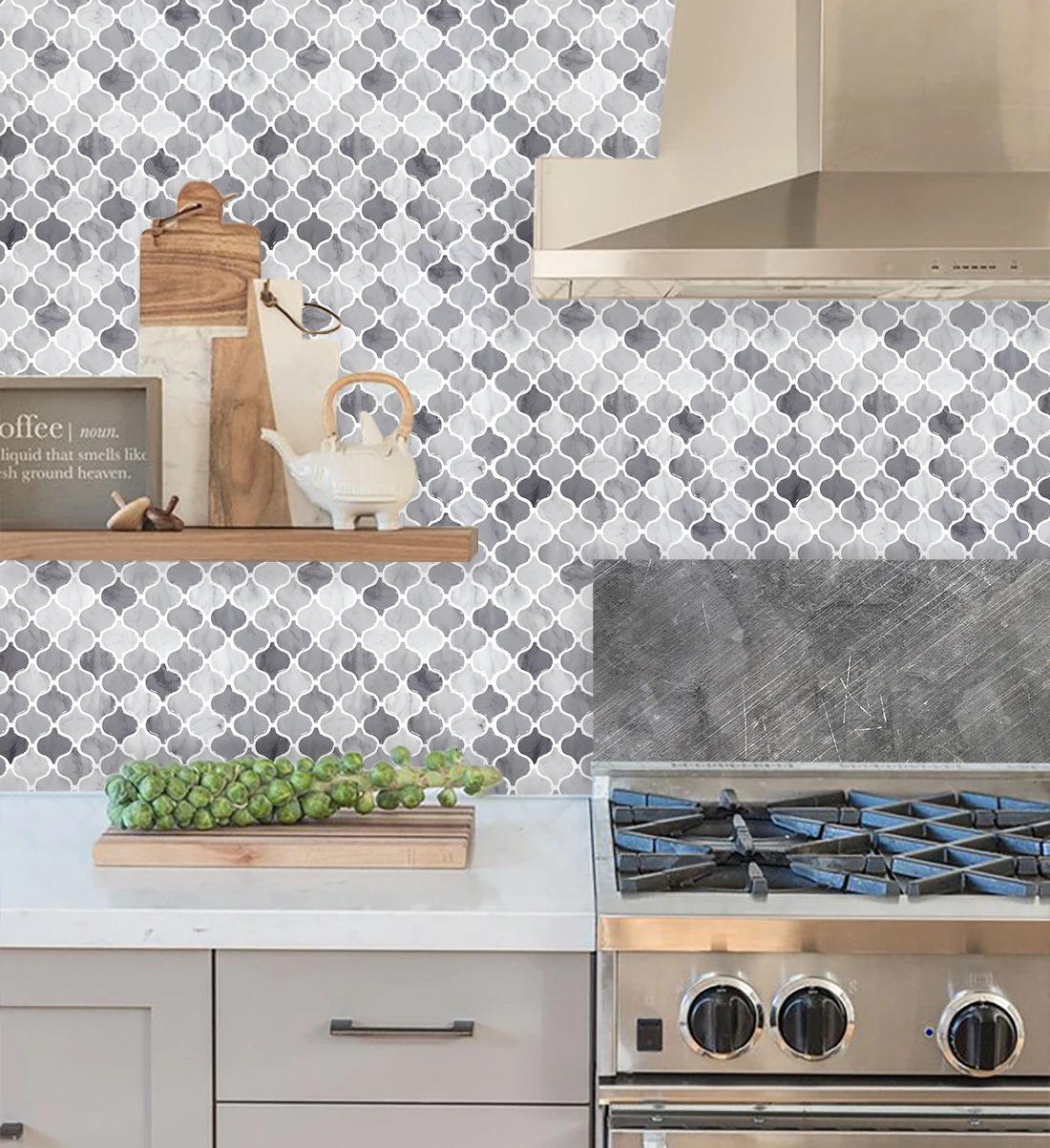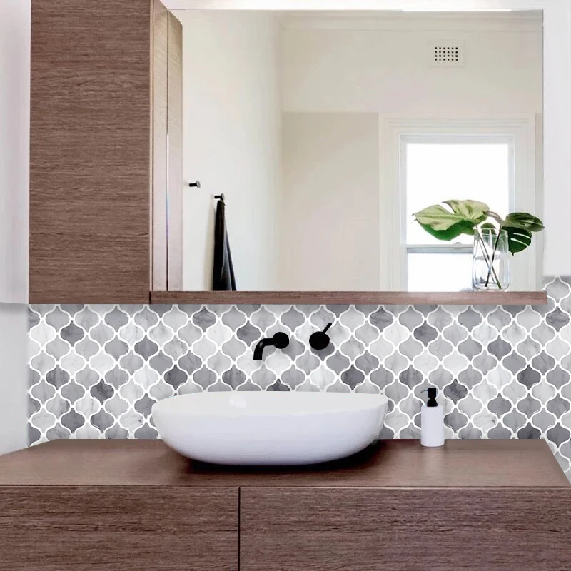 Плитка может быть легко установлена непосредственно над существующими панелями или гладкой поверхностью. Специально разработанная для кухни и ванной, плитка устойчива к нагреванию плиток и влажности ванных комнат.