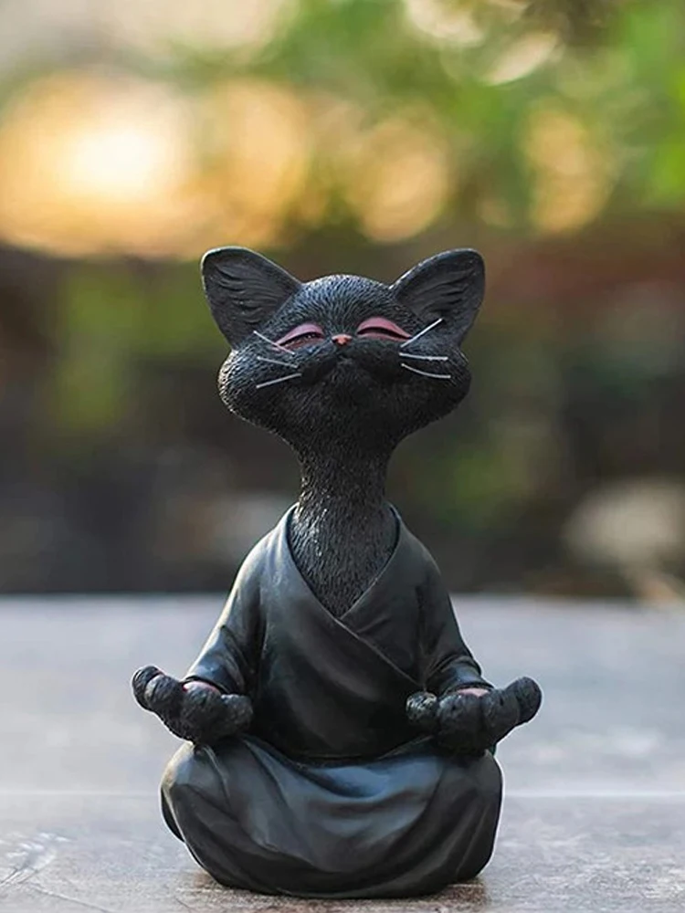 2021 креативное украшение двора для сада, домашняя причудливая черная статуэтка Будды, кошки, коллекционная Статуэтка для медитации, йоги, Счастливого искусства