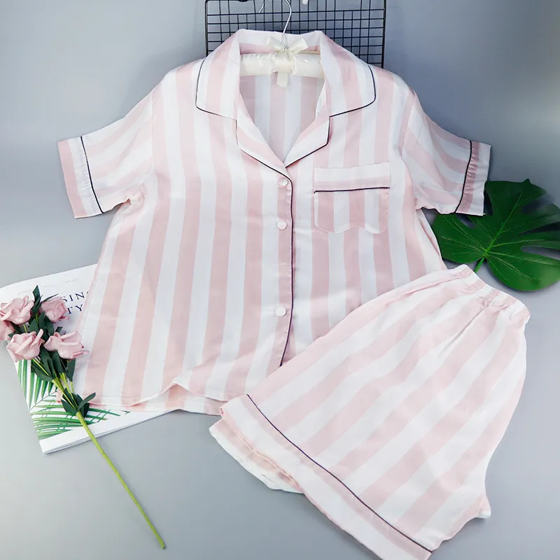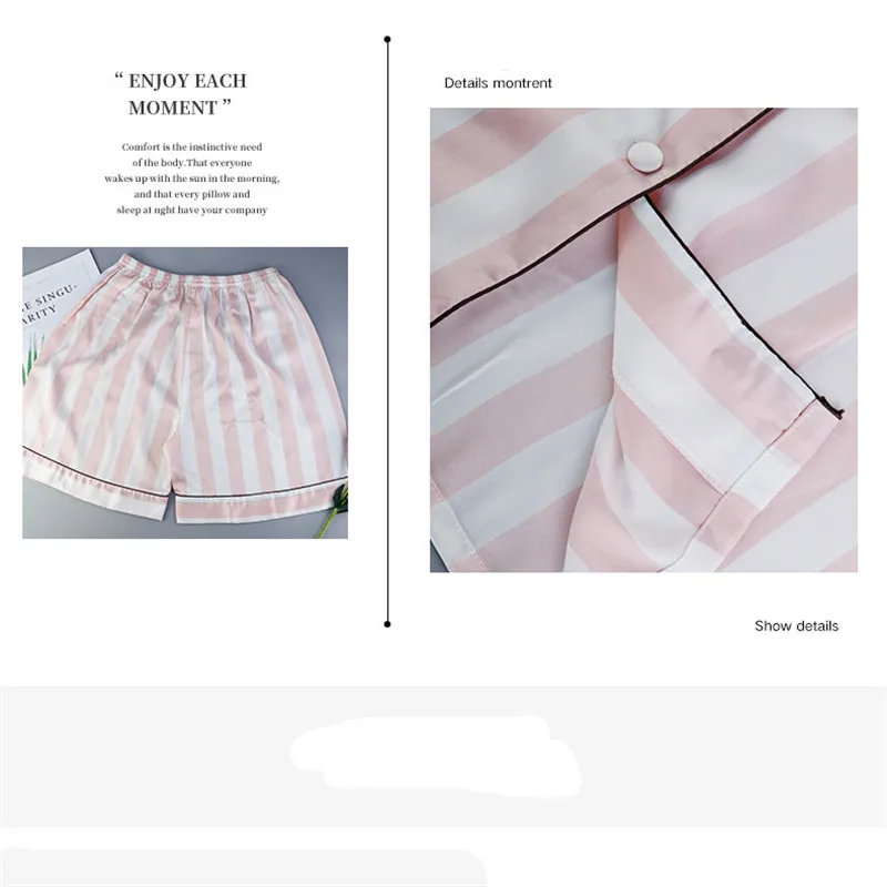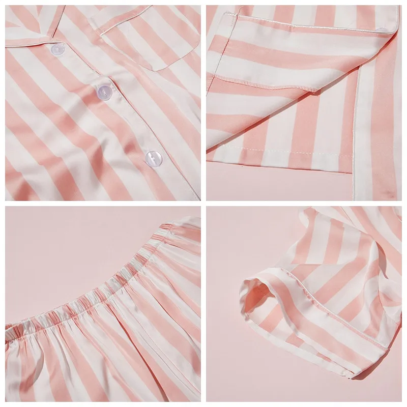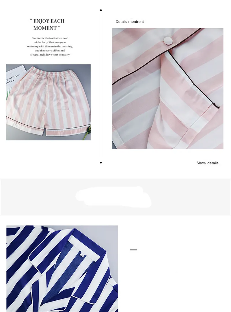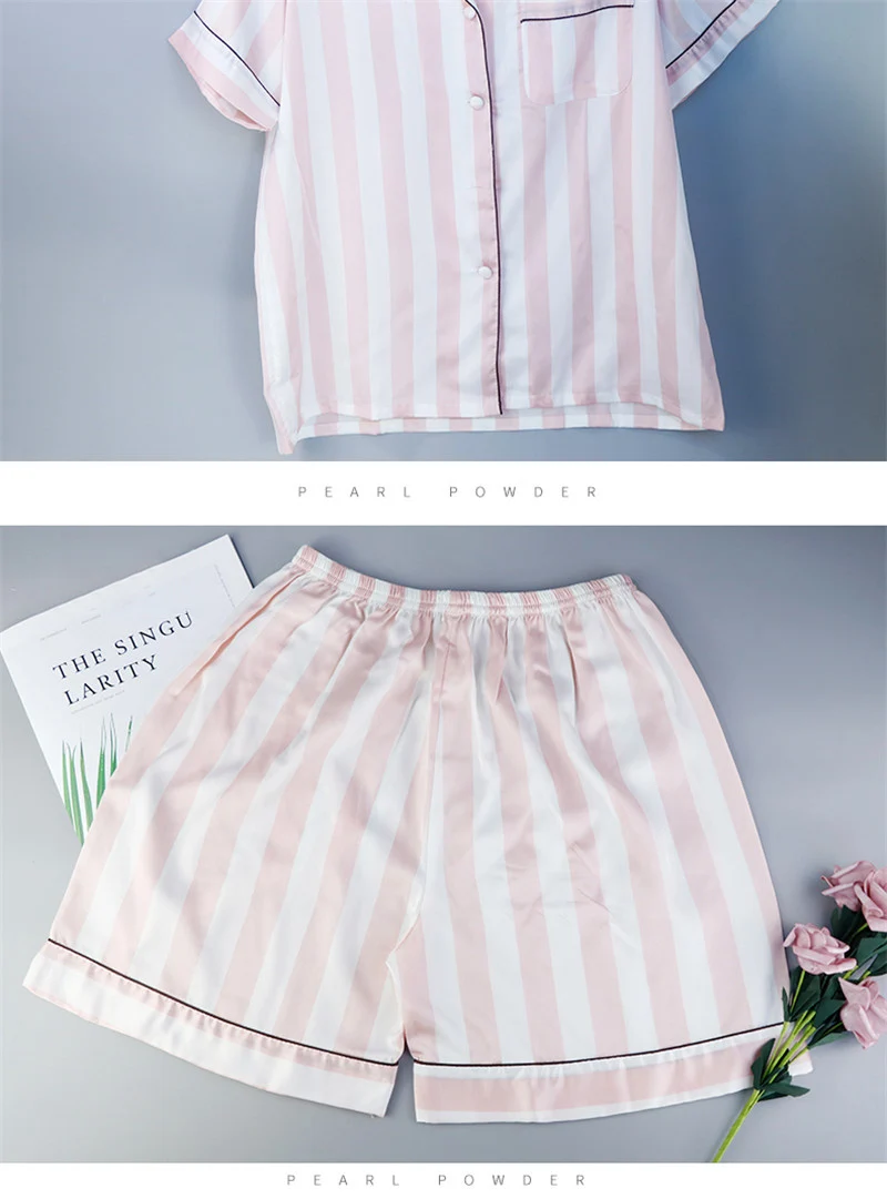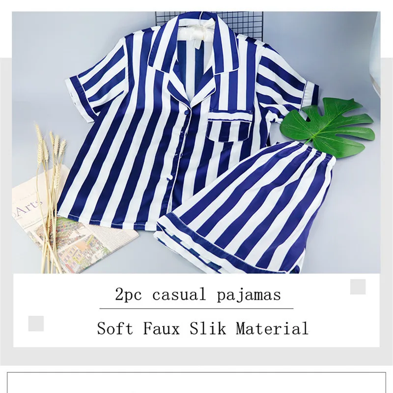 Пижамный комплект JULY'S SONG женский из 2 предметов, одежда для сна из искусственного шелка, летняя пижама в синюю полоску, домашняя повседневная одежда с коротким рукавом