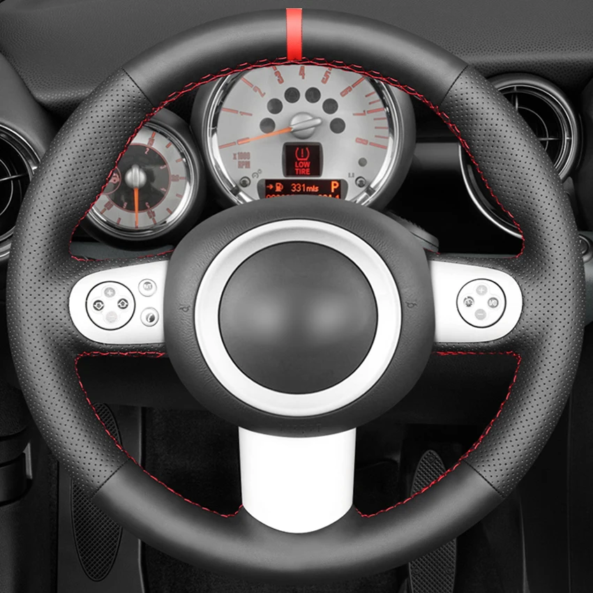 Маркер для Mini (хэтчбекMini R50R52R53) чехол рулевого колеса автомобиля-2001 Кабриолет 2006-2004, черный, искусственная кожа, красный, 2008