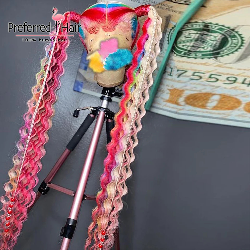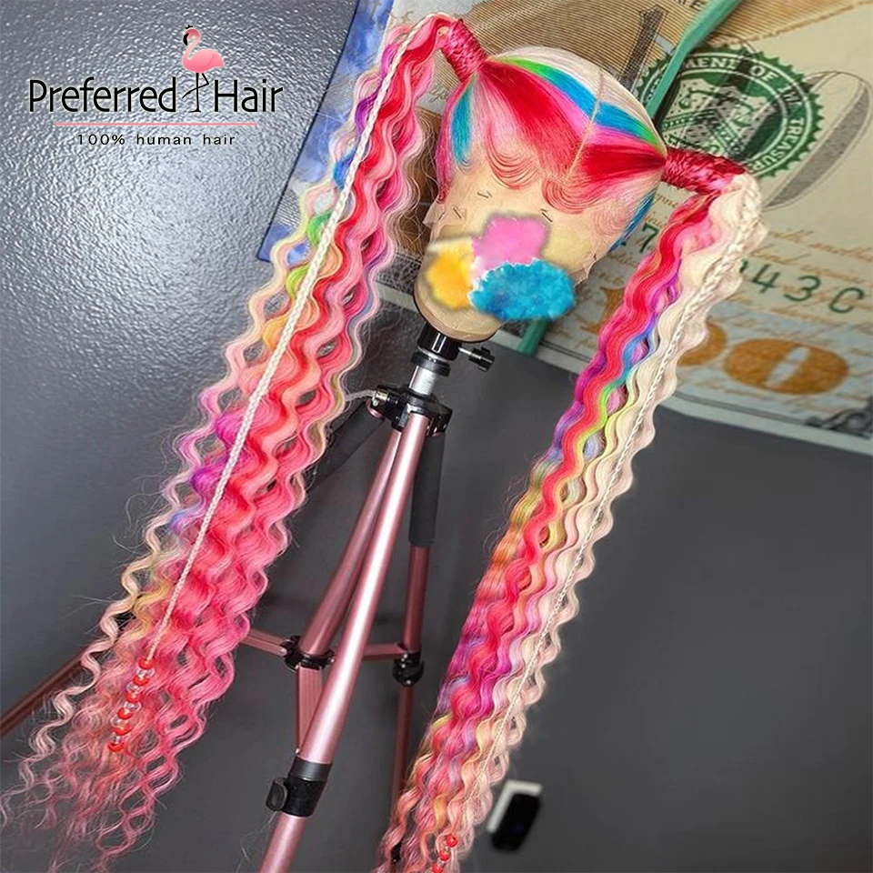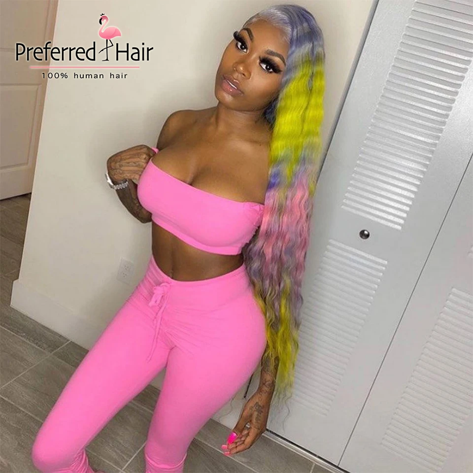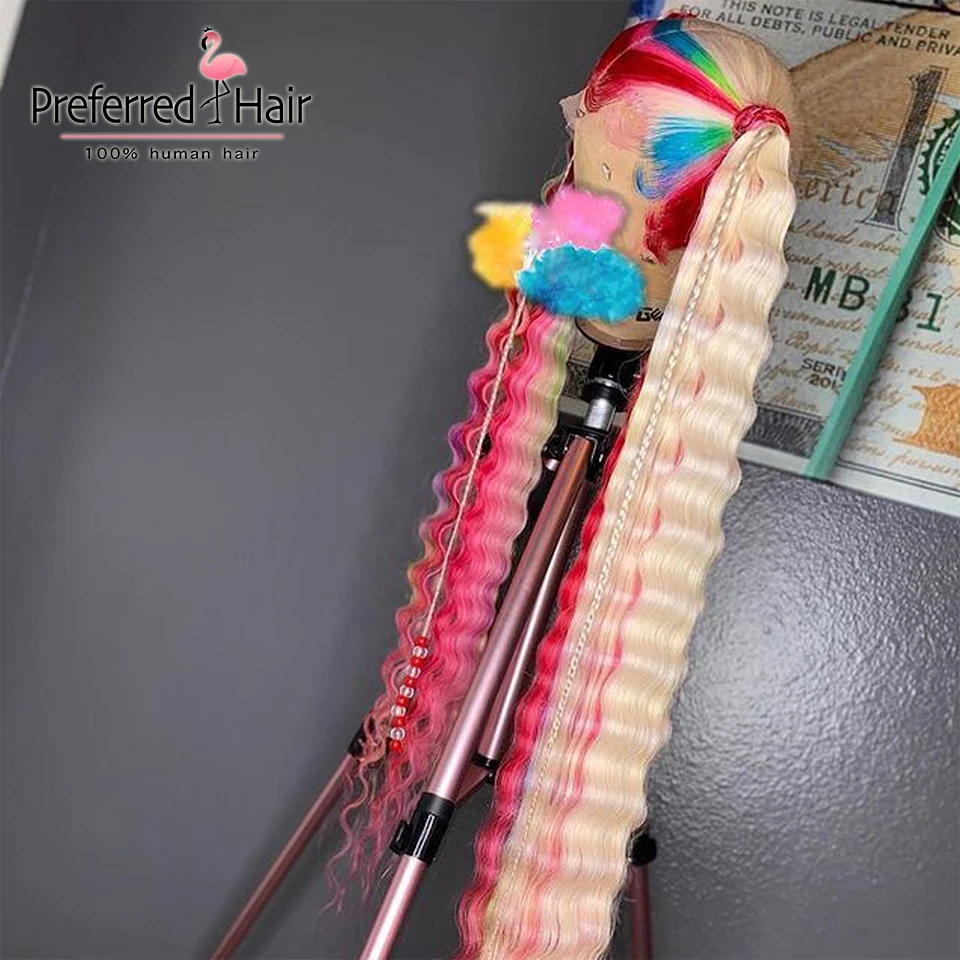 Предпочтительный парик радужной расцветки с глубокой волной, бразильские парики без повреждений 13x 4, парик на сетке спереди, предварительно выщипанные прозрачные парики из человеческих волос на сетке для женщин