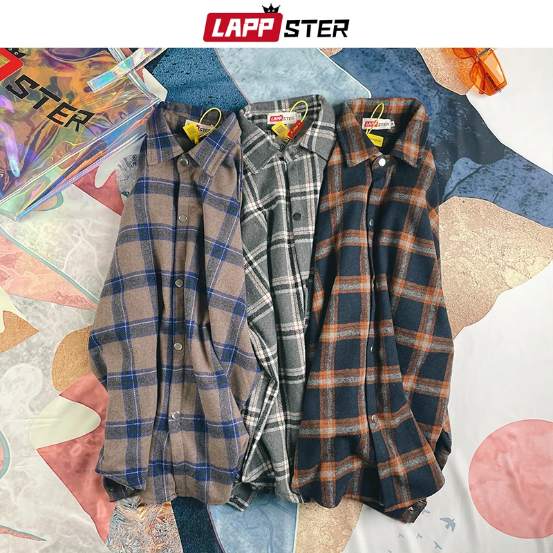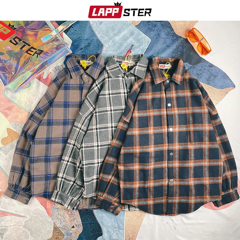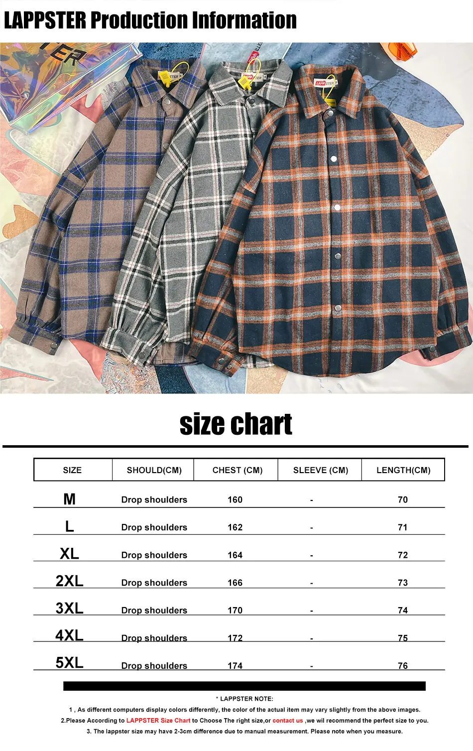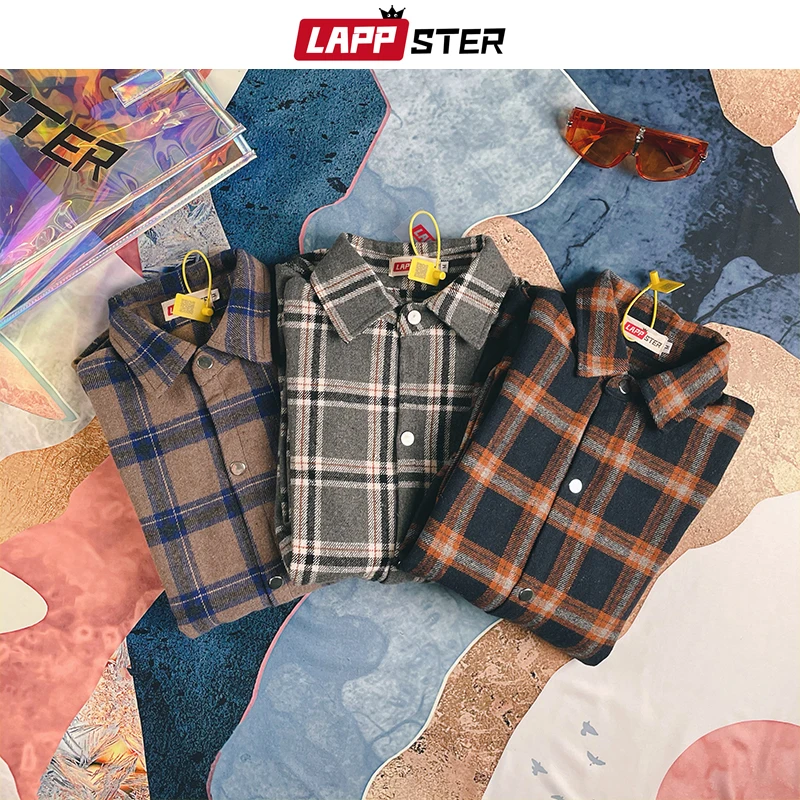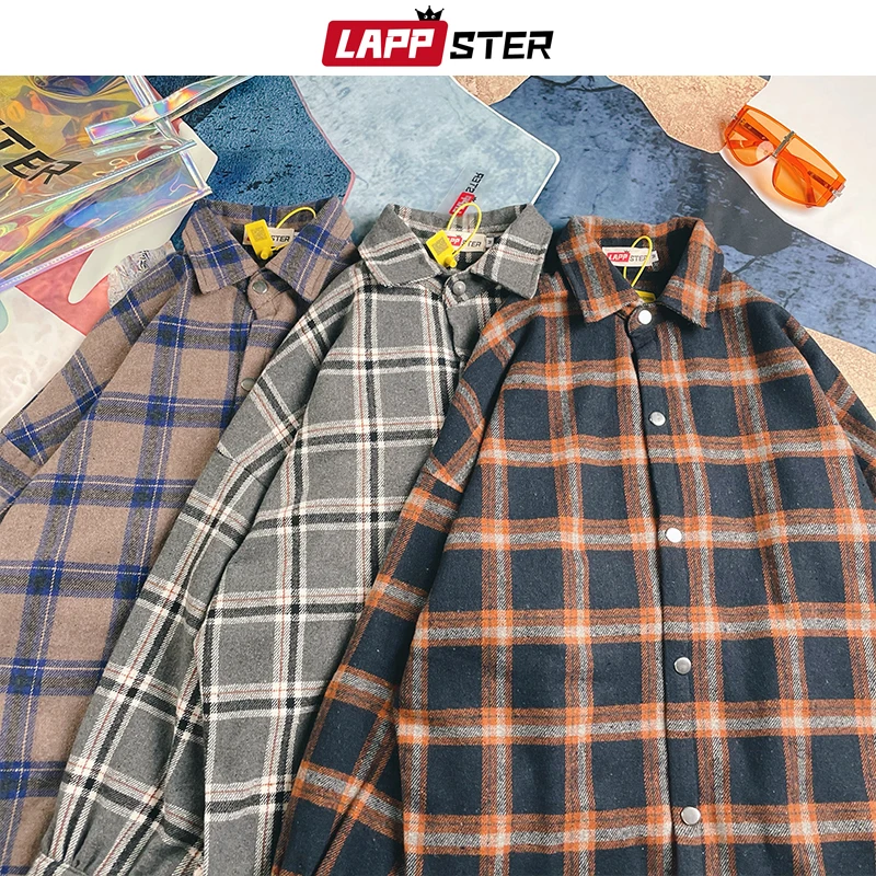 LAPPSTER Для мужчин рубашки с длинным рукавом в шотландскую клетку Винтаж рубашки 2021 Для мужчин s Harajuku Японская уличная одежда мужской футболка с коротким рукавом с замком молнией в стиле хип-хоп, футболки размера плюс
