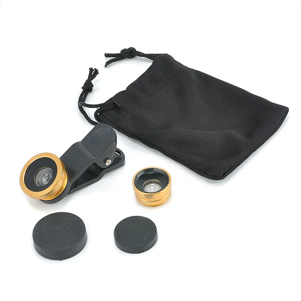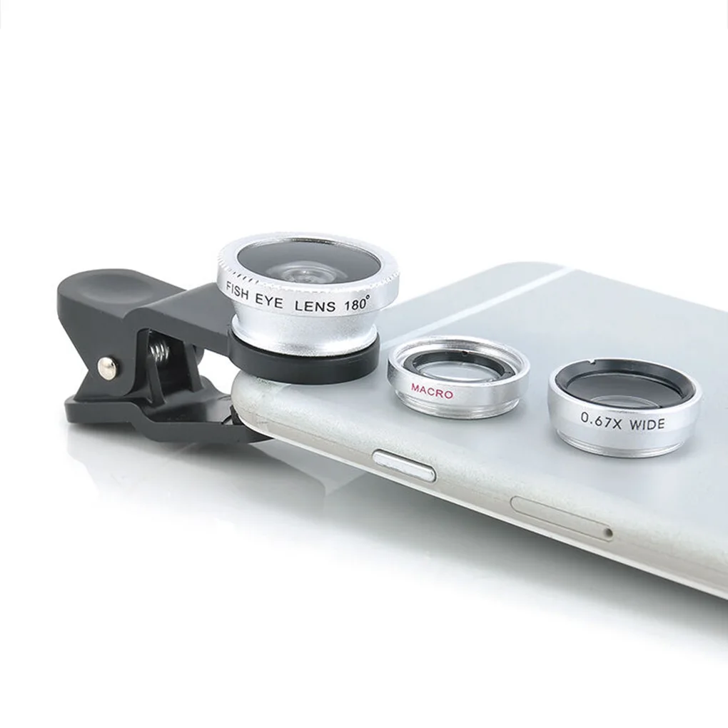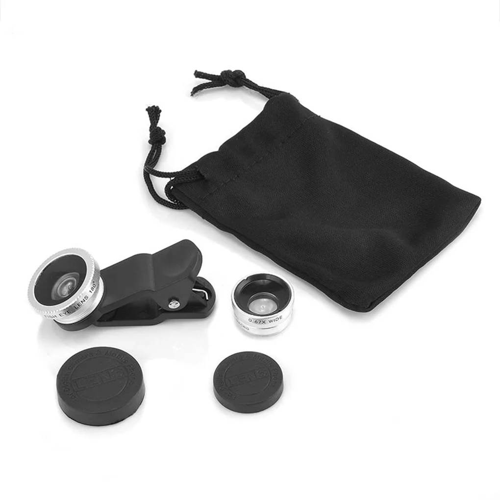 3 в 1 Универсальный смартфон Камера клип на объектив комплект 180 градусов Рыбий глаз 0.67X Широкий формат макро-объектив