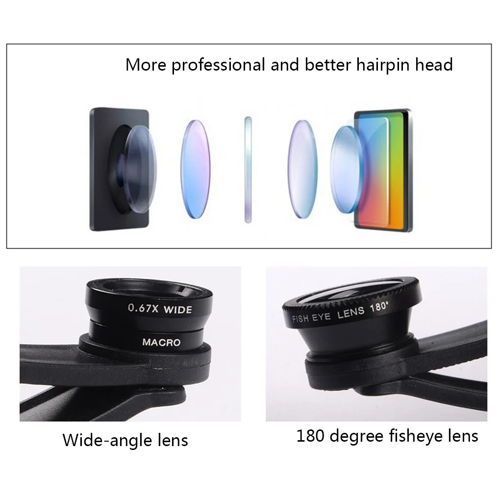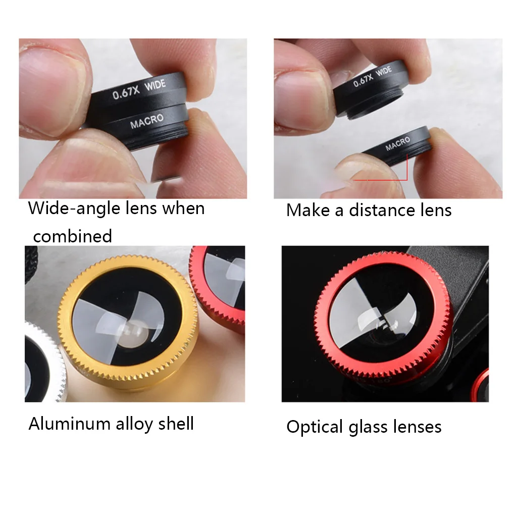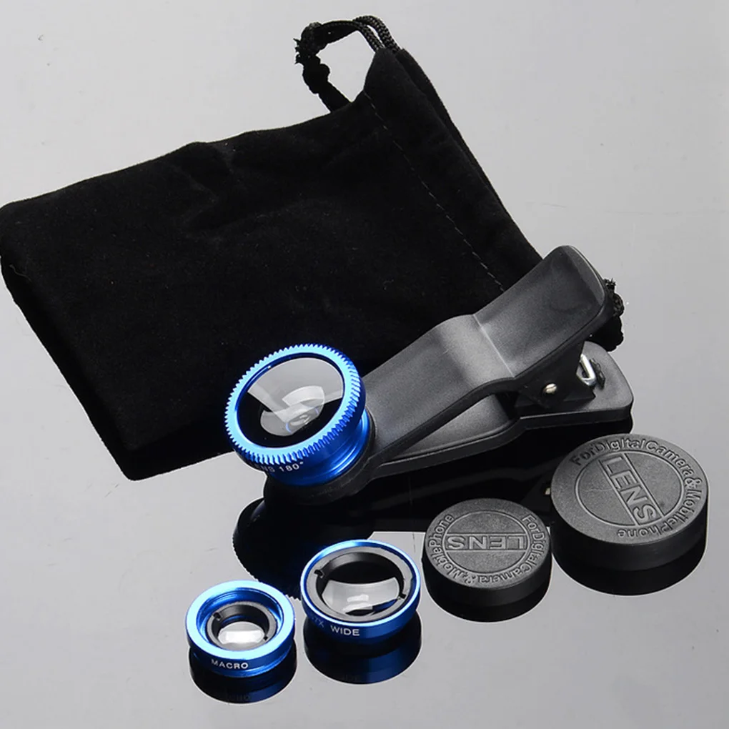 3 в 1 Универсальный смартфон Камера клип на объектив комплект 180 градусов Рыбий глаз 0.67X Широкий формат макро-объектив