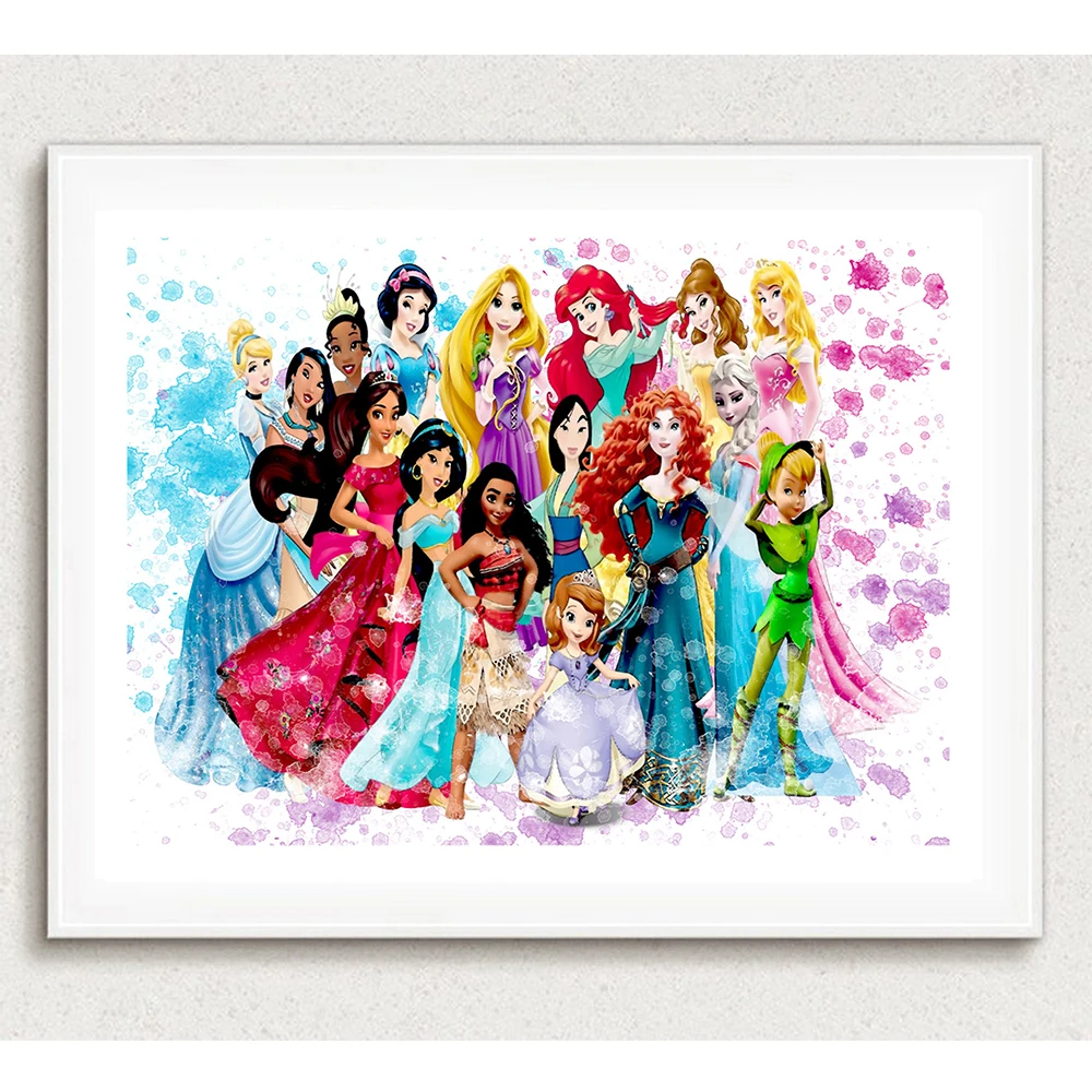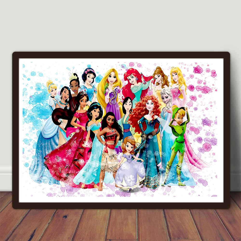 Картина на холсте Акварель Disney, рисунок Принцессы Диснея, магнолия, Белоснежка, декоративная живопись для спальни