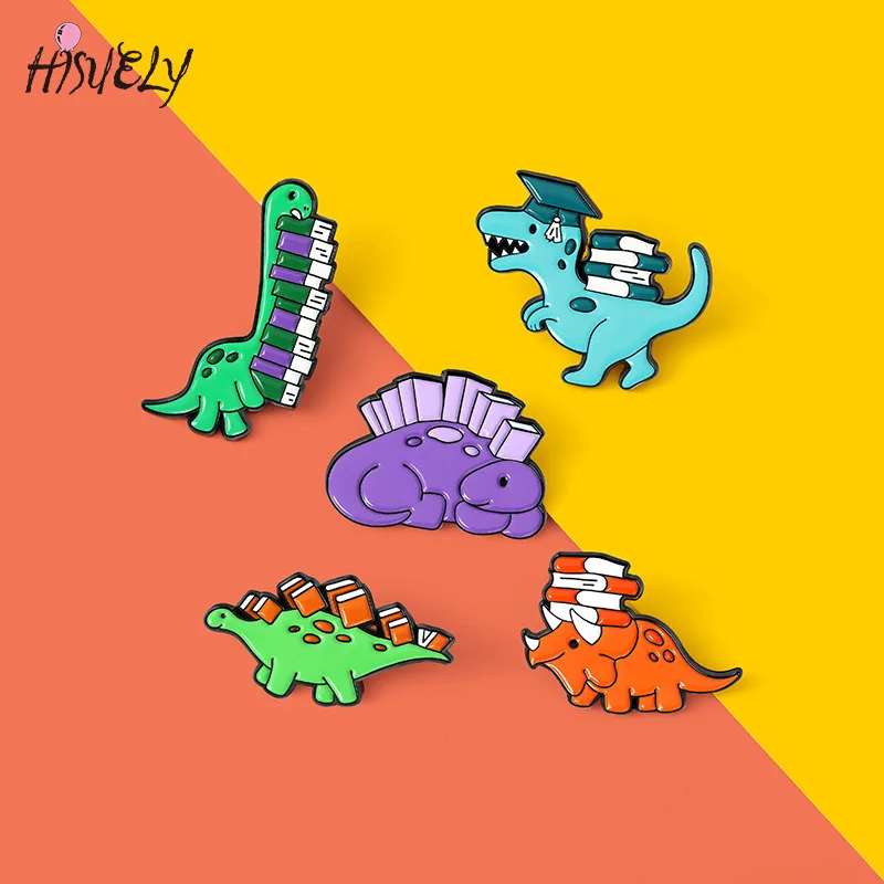 Креативный мультфильм Доктор Брошь с динозавром милый отворот булавка динозавр Доктор Брошь Мода мультфильм животное книга брошь