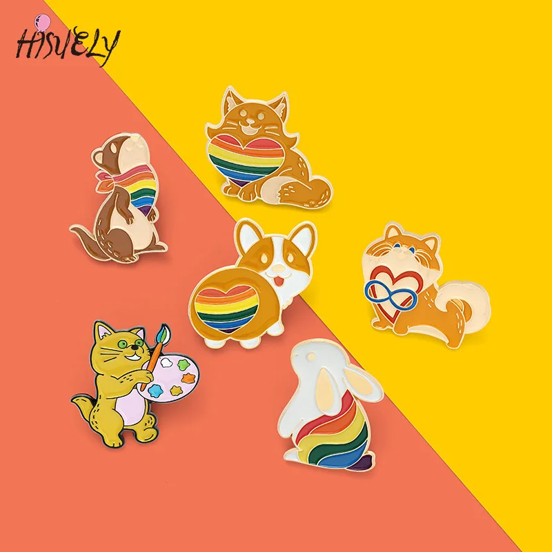 Милый Радужный кролик щенок животное брошь сумка одежда рюкзак отворот Эмаль Булавка значок мультфильм Ювелирные изделия Подарки