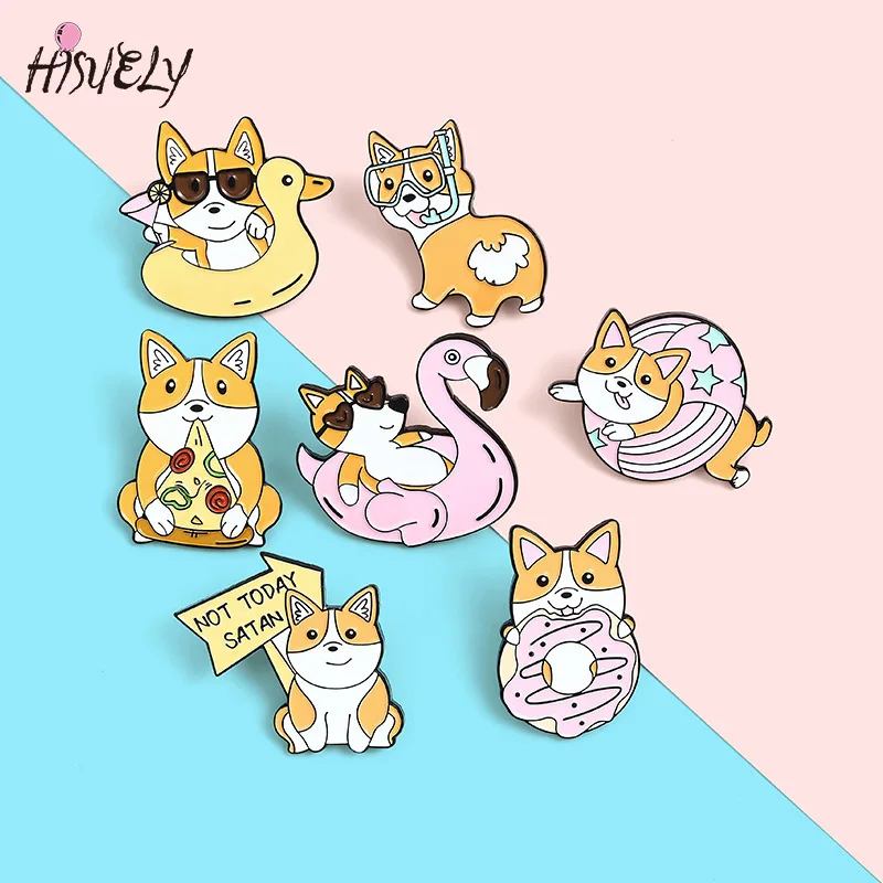 Модная эмалированная булавка, мультяшная брошь в виде щенка, шапка с милым животным креативным пончиком, женская одежда, рюкзак, значок