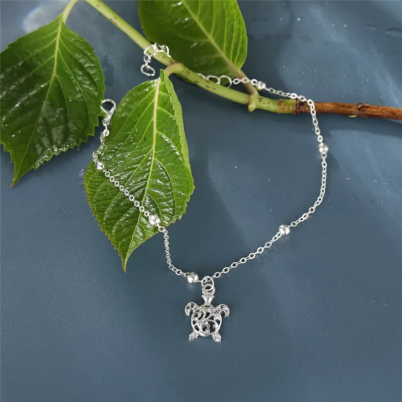 Черепаха ножные браслеты серебро Цвет раковины ножные браслеты для женщин в винтажном стиле ручной работы с ремешком на щиколотке, 2021 ножной браслет пляж ювелирные изделия вечерние подарок