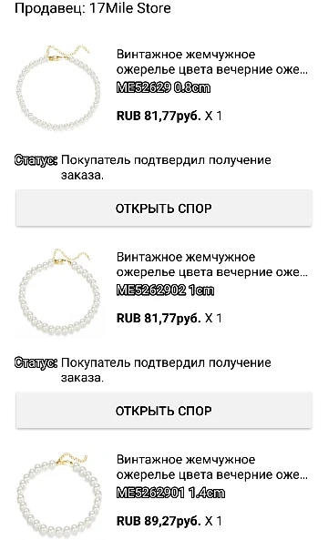 Брала с купонами в июне. Доставка три недели с полным отслеживанием, упаковано в пупырку. Бусы лёгкие, цвет кремовый, на белый, размеры совпали, длина 35+7 см. Чёрная приспасоба длина 90 см, диаметр 3 см, мягкая, на толстой проволоке, лёгкая. Браслет с ракушками стальной цвет, длина 20+6 см. Продавцу спасибо, рекомендую.