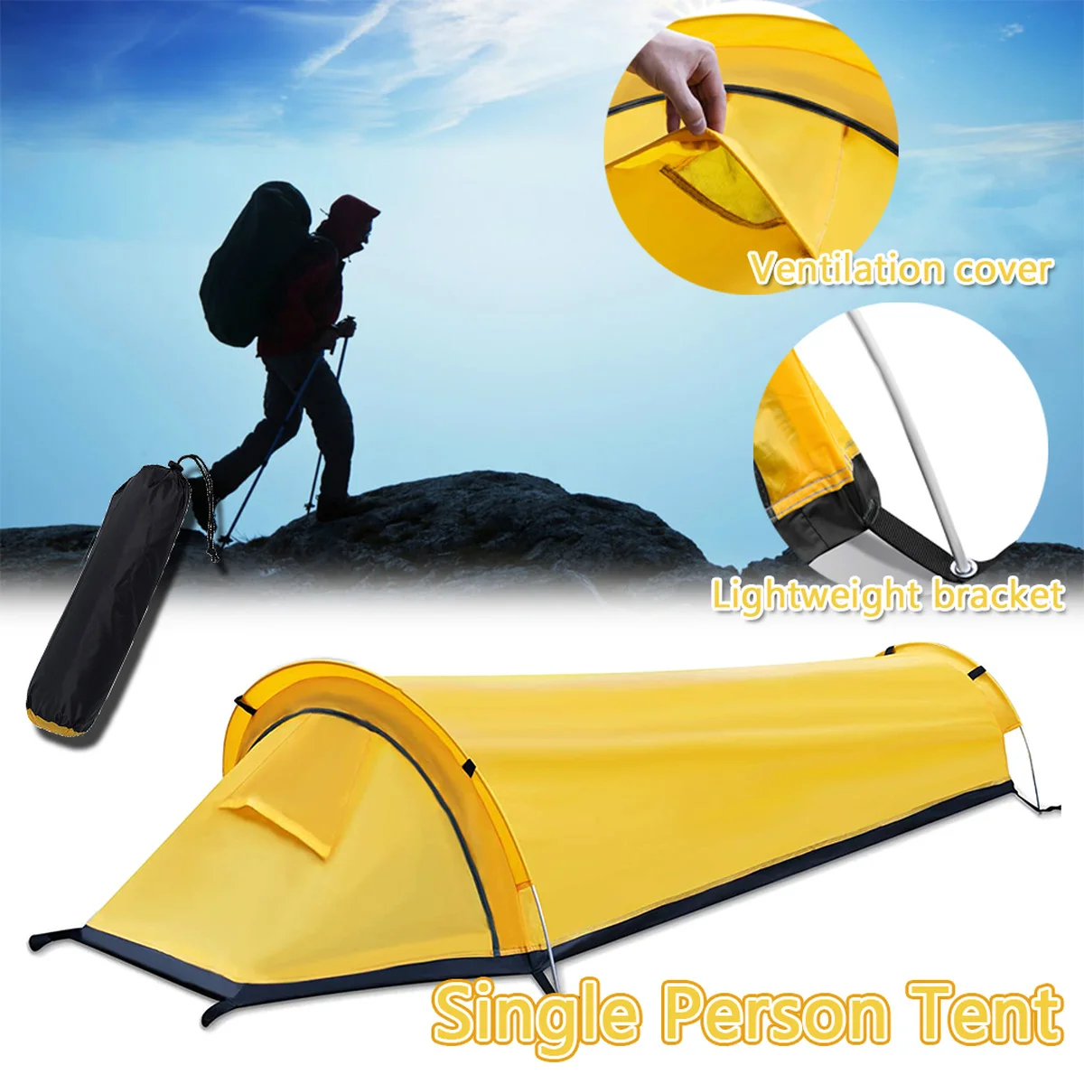 Особенности:Ультра легкий и компактный: Эта Сверхлегкая палатка идеально подходит для сольных приключений. Вес всего лишь 1,5 фунтов, очень удобно и легко транспортировать.Достаточно места для 1 человека: длина 86,6 ", максимальная высота 19,7" и ширина 35,4 ", это делает его очень просторной палаткой 1 человека. А также обеспечивает вестибюль у двери.100 процентов Водонепроницаемый палатка: 2000 мм толще воды в сочетании с проклеенные швы и полностью вшитые в плащ, абсолютно Водонепроницаемый.Хорошо продуманный: вентиляционные заслонки в передней двери для оптимальной циркуляции воздуха Избегайте конденсации.Сверхлегкий с мешком для хранения для удобства переноски.Идеальный частный приют для вас, ветрозащитный и непромокаемый, отлично подходит для пеших прогулок, кемпинга, альпинизма. Характеристики:Материал: полиэфирное волокно и ткань ОксфордЦвет: армейский зеленый, желтыйВес: 690 г/24,3 унцийРазмер: 220*90*50 см/86,6*35,4*19,7 дюймов Посылка:1 * палатка1 * мешок для хранения4 * струны8 * ногти