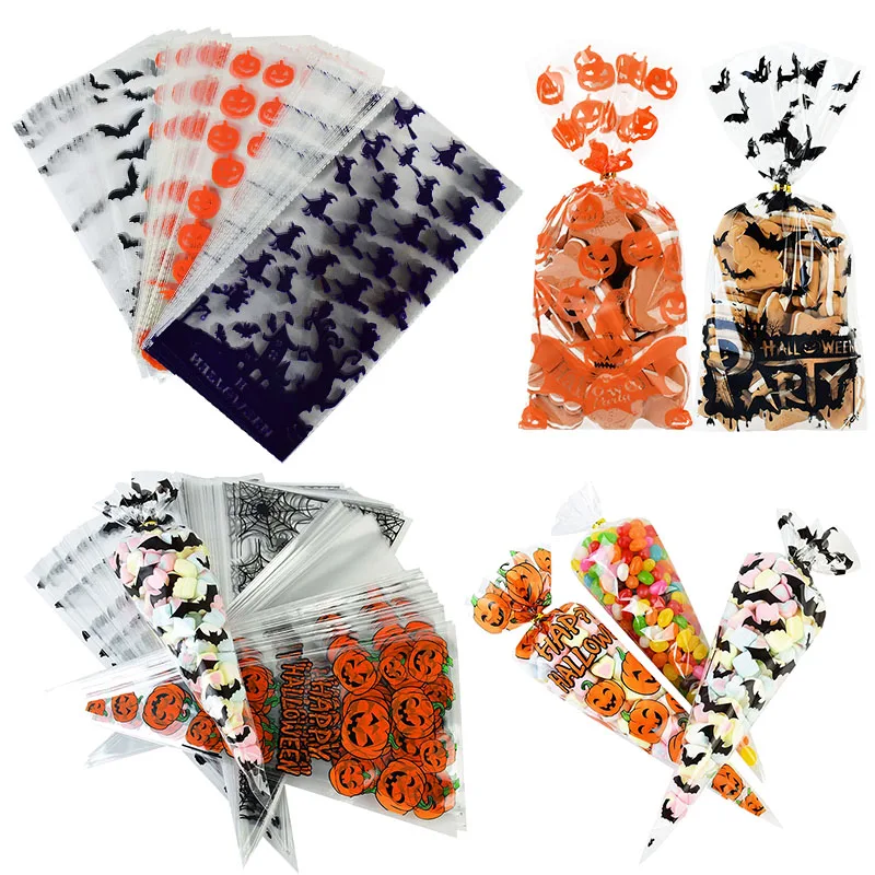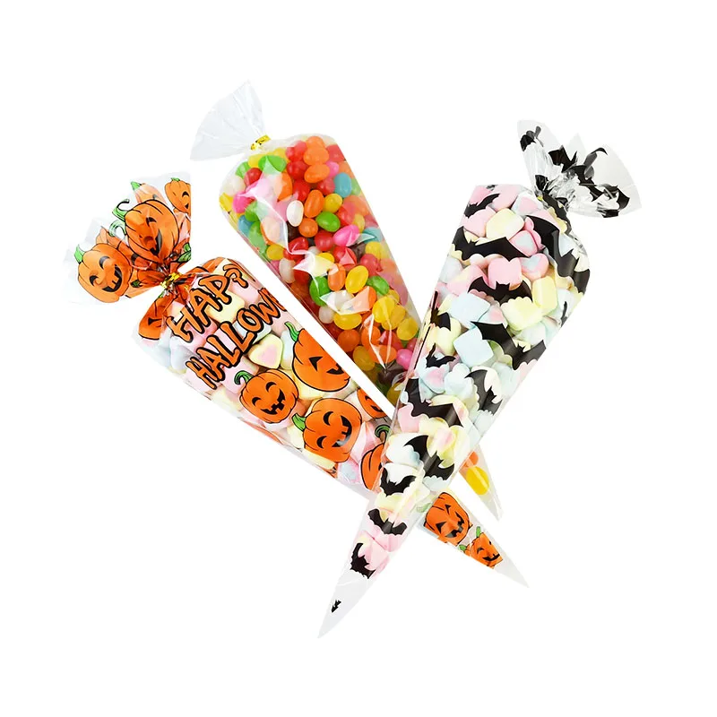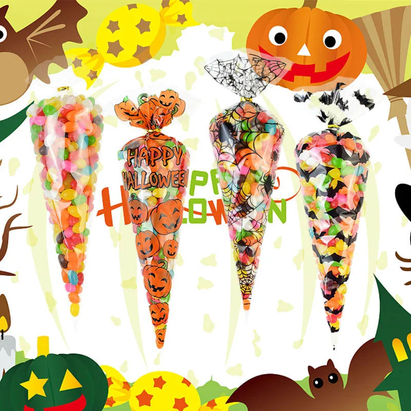100 шт.лот Хэллоуин конус сумки тыквы пластиковая прозрачная упаков...