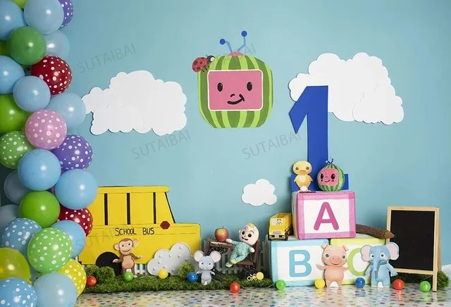 Фон для фотосъемки с изображением арбуза, украшения на день рождения, животных, школьный автобус, девочка, мальчик, 1-й торт, разбивной фон для фотостудии