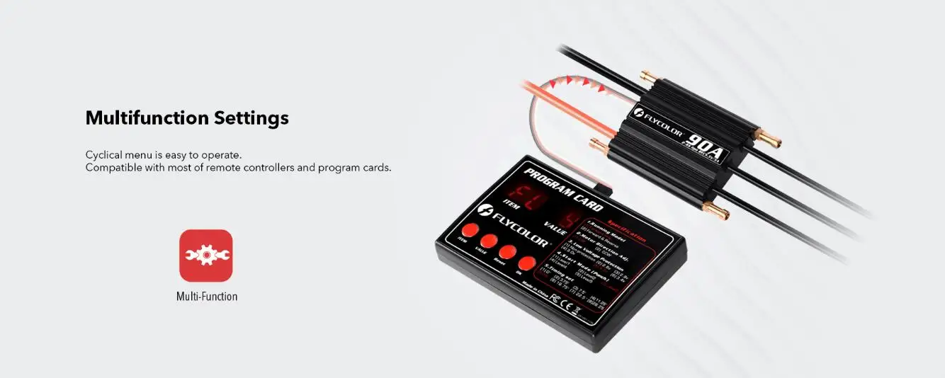 Особенности:-Быстро и плавно:-Водонепроницаемая конструкция-Встроенный SBEC, множественная защита-Простота в эксплуатации, параметры можно настроить с помощью передатчика или программной карты-Используйте мощный и высокопроизводительный микроконтроллер. Пользователи могут устанавливать функции по своему требованию, полностью воплощая интеллектуальные характеристики. Уникальный дизайн цепи, сильная защита от помех.-Водонепроницаемая конструкция (Примечание: При наличии воды в ESC высушите воду в разъемах).-Можно установить режим запуска. Быстрый отклик дроссельной заслонки и очень Плавная линейность управления скоростью. Совместим со шкалой и гоночной лодкой.-Можно установить пороговое значение защиты от низкого напряжения.-Встроенный переключатель BEC, большая мощность с сервоприводом, низкое энергопотребление.-Несколько функций защиты: защита от аномального входного напряжения/Защита от отключения при низком напряжении, защита от перегрева и защита от потери сигнала дроссельной заслонки, делают ESC более надежным.-Высокая мощность безопасности: где бы ни находился рычаг дроссельной заслонки, двигатель не запустится сразу.-Защита от перегрева: когда температура ESC превышает 100 град., выходная мощность автоматически уменьшается. Когда выходная мощность ниже 80 град. вернется к нормальной.-Настройка меню цикла, простое управление. Поддержка настройки с программным боксом и передатчиком.Flycolor 50A водонепроницаемый бесщеточный ESC:Выход: непрерывный 50 А, импульс А до 10 секунд.Входное напряжение: 2-6SBEC: 5,5 В/5 АРазмер: 57*49*18 мм.Вес: 90 г.Применение: лодки макс. 55 смFlycolor 70A водонепроницаемый бесщеточный ESC:Выход: непрерывный 70а, импульс 420а до 10 секунд.Входное напряжение: 2-6SBEC: 5,5 В/5 АРазмер: 57*49*18 мм.Вес: 101 г.Применение: лодки макс. 70 смFlycolor 90A водонепроницаемый бесщеточный ESC:Выход: непрерывный 90 А, импульс 540 А до 10 секунд.Входное напряжение: 2-6SBEC: 5,5 В/5 АРазмер: 57*49*18 мм.Вес: 102 г.Применение: лодки макс. 100 смFlycolor 120A водонепроницаемый бесщеточный ESC:Выход: непрерывный 120 А, импульс 720A до 10 секунд.Входное напряжение: 2-6SBEC: 5,5 В/5 АРазмер: 76*56*25 мм.Вес: 155 г.Применение: лодки макс. 120 смFlycolor 150A водонепроницаемый бесщеточный ESC:Выход: непрерывный А, импульс А до 10 секунд.Входное напряжение: 2-6SBEC: 5,5 В/5 АРазмер: 76*56*25 мм.Вес: 165 г.Применение: лодки макс. 135 смПрограммная карта:100% Новый брендЛегкий и удобный в использованииИзготовлено из хорошего материалаВысокое качество и долговечность в производительностиПодходит для программирования RC boats ESCБренд: FlycolorНазвание товара: Программная картаРежим работы: Вперед/вперед и назадНаправление двигателя adj. : CW CCWЗащита от низкого напряжения: без защиты/2,6 В/2,8 В/3,0 в/3,2 В/3,4 вРежим запуска (удар): Уровень 1/Уровень 2/Уровень 3/уровень 4/Уровень 5Время: 0 °/3,75 °/7,5 °/11,25 ° / 15 °/18,75 °/22,5 °/26,25 °Размеры изделия: 95*650*150 мм (отклонение из-за ручного измерения)Вес изделия: 44,5 г
