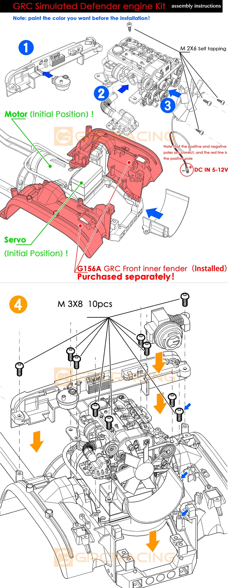 Детали для украшения двигателя Grc Trx4, пульт дистанционного управления для 110, подъемный автомобиль Trx4 Defender Traxxas, внешний вид дизельного двигателя G156es