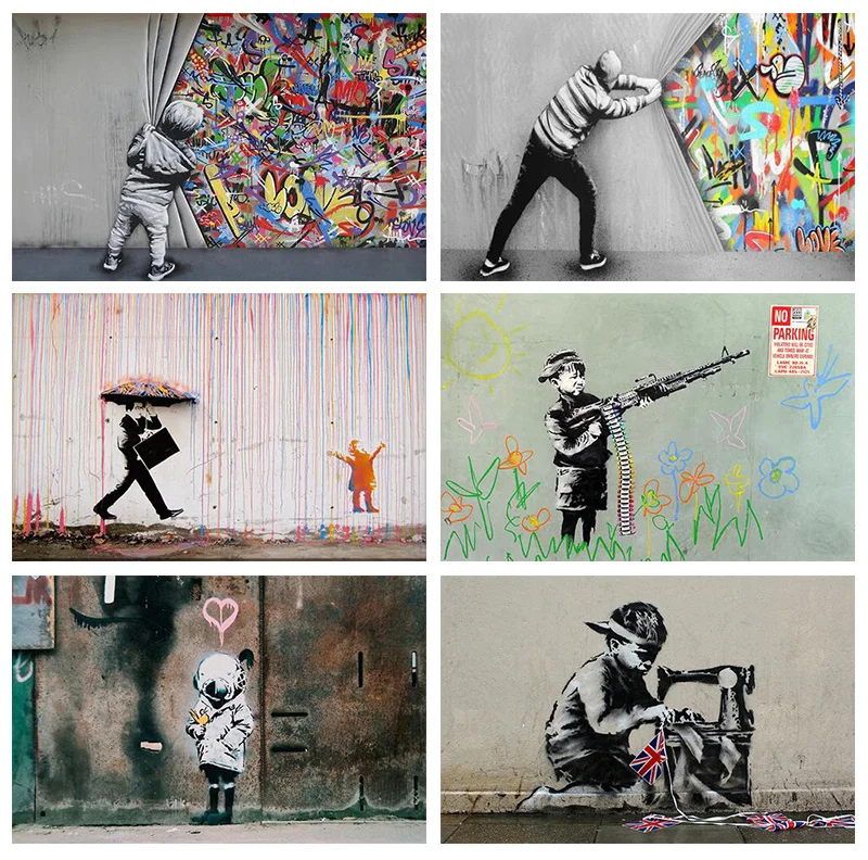 Граффити Искусство Дети за занавеской холст картины фигурки постеры...