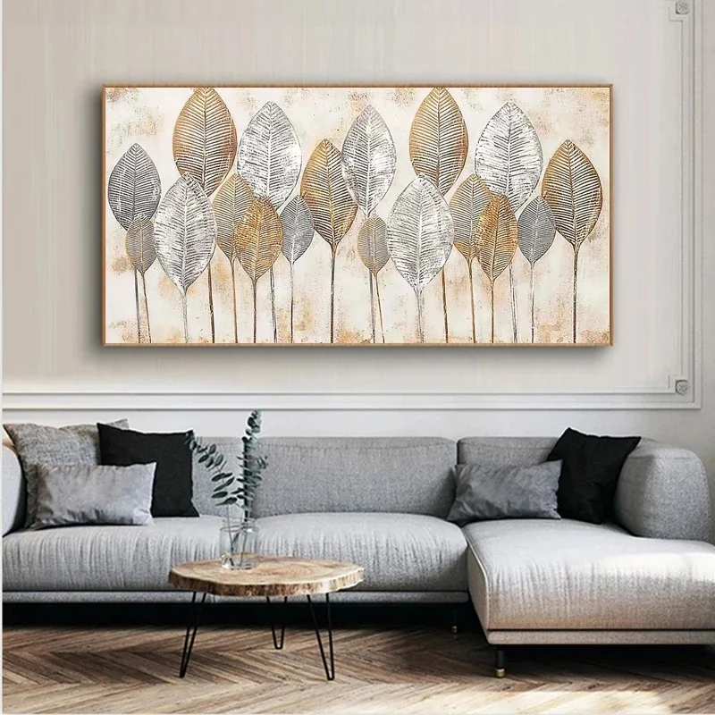 Абстрактные золотые листья, искусственная кожа, напечатанные на холсте, большие размеры, декоративные картины для гостиной, спальни, украшение для дома