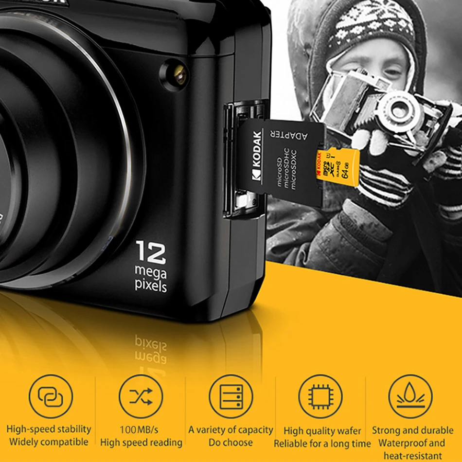 Карта памяти Kodak подходит для смартфонов, профессиональных камер, hd камер, планшетных компьютеров, совместимых устройств с tf-картами, таких как dash CAM, GPS, оборудование для мониторинга, БПЛА и ТВ-стерео.
