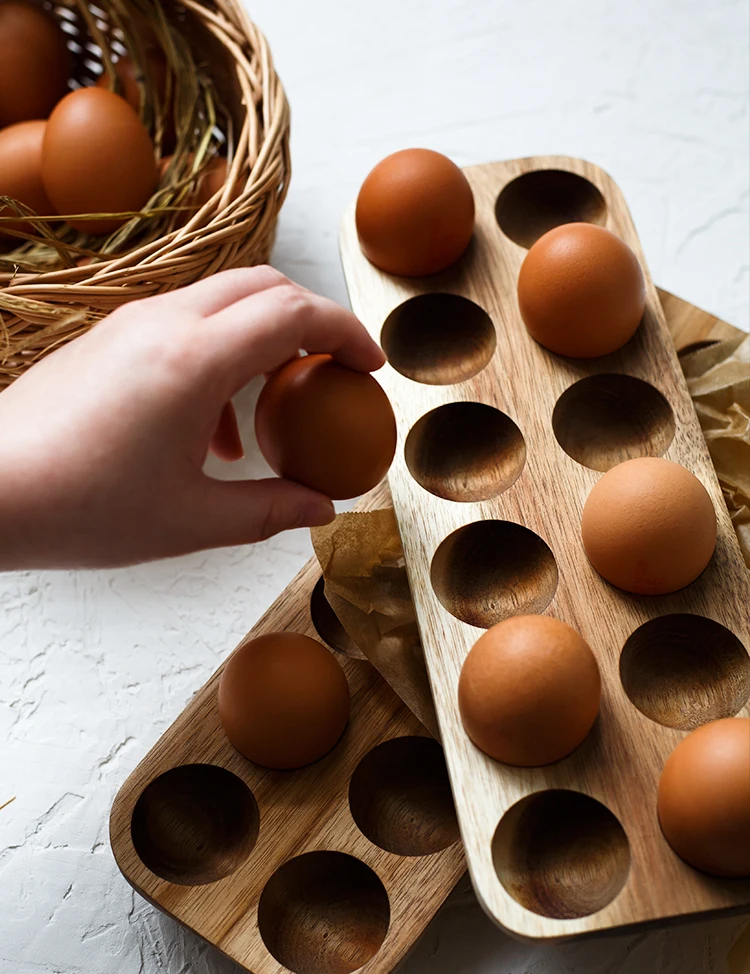 Деревянный двухрядный ящик для хранения яиц в японском стиле, домаш...