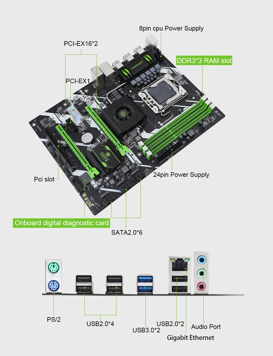 HUANANZHI X58 DELUXE X58 для LGA1366 DDR3 1066133Hz 48 ГБ SATA2.0 U...