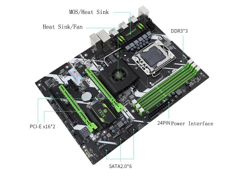 Материнская плата HUANANZHI X58 LGA 1366, 3 канала, LGA1366, поддер...