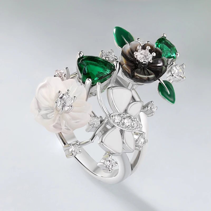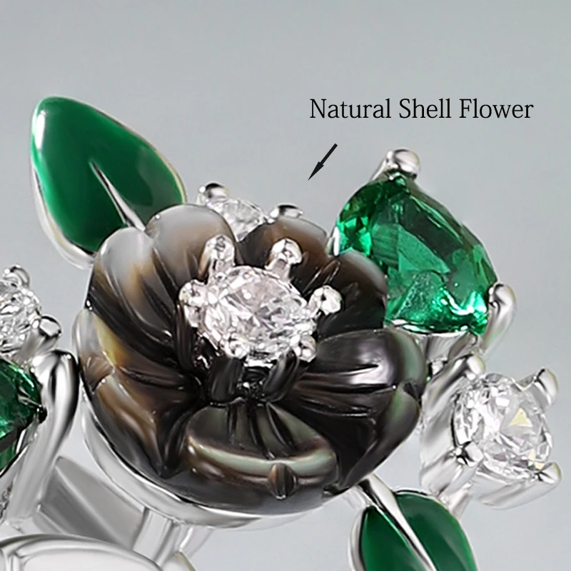 Летний популярный стиль, роскошные ювелирные изделия, высокое качество, циркон, натуральный корпус, цветок, лист, эмаль, кольцо для женщин, 2021 тренд