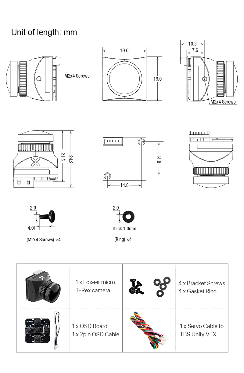 Foxeer T-Rex Micro 1500TVL Super WDR 4:316:9 PALNTSC переключаемая камера с низкой задержкой FPV 19*19 мм для FPV гоночных беспилотных летательных аппаратов