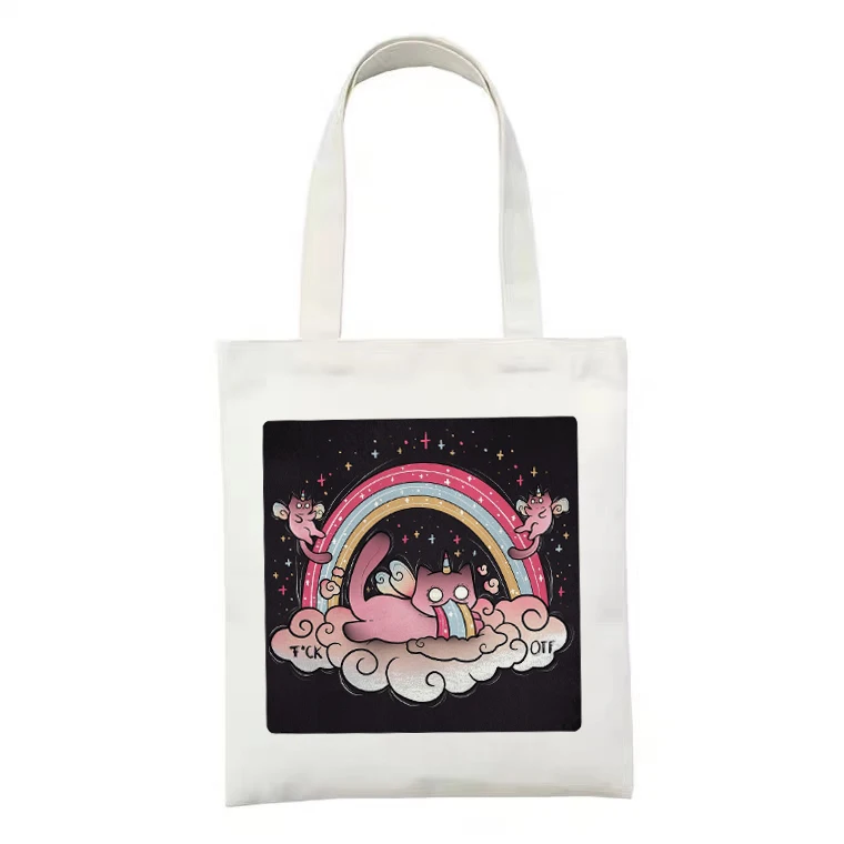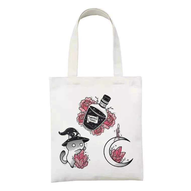 Многоразовая сумка для покупок, Женская Холщовая Сумка-тоут с принтом сатаны, дьявола, кошек, мультяшная сумка, шоппер, Наплечные сумки для женщин