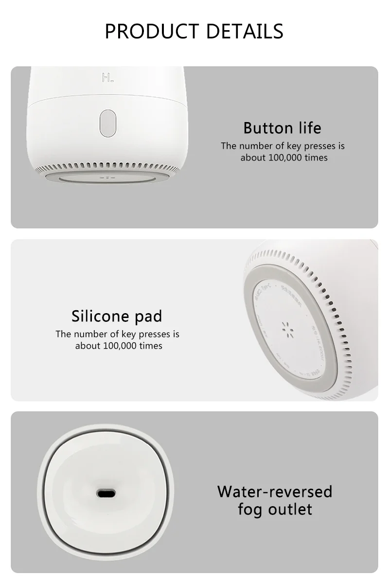 Используйте TDK материал производства 3,0 MHz clouding планшетов,Ультразвуковые таблетки для распыления для получения высокочастотных механических вибраций энергии,Частицы воды в 10 мкм ниже молекул воды.Благодаря ветру вентилятора в резервуаре для воды создает давление, деликатная забитая Вода равномерно рассеивается по воздуху,Не повреждайте натуральный состав эфирного масла, каждая молекула воды полна жизненной силы и нежно прикасайтесь к вам.