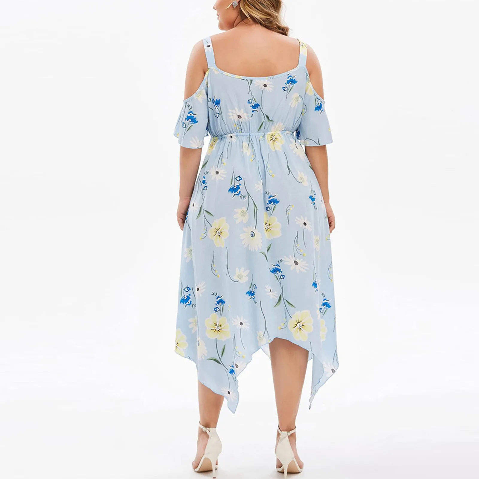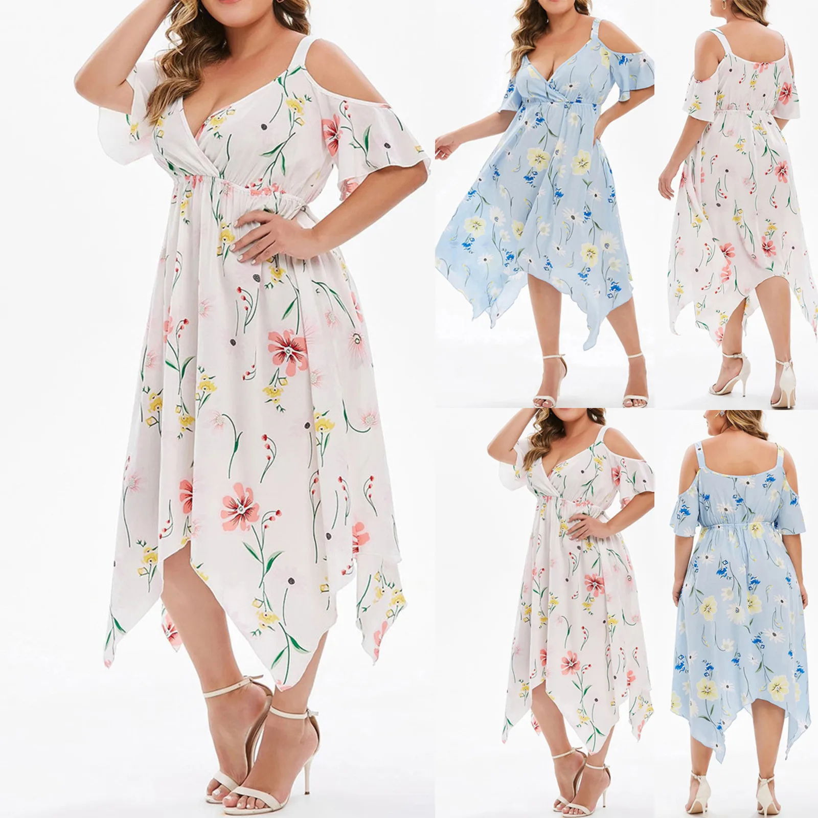 Летнее платье 2021 модные женские туфли с цветочным рисунком платье в цветочном принте, с V-образным вырезом и короткими рукавами, холодный плечо платье плюс Размеры женская одежда Sukienka