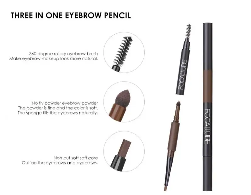 5. Новаторский дизайн порошка для бровей и карандаша для бровей, чтобы сделать макияж более легким: формирование карандаша для бровей, окраска пудры для бровей и формирование кисти для бровей.