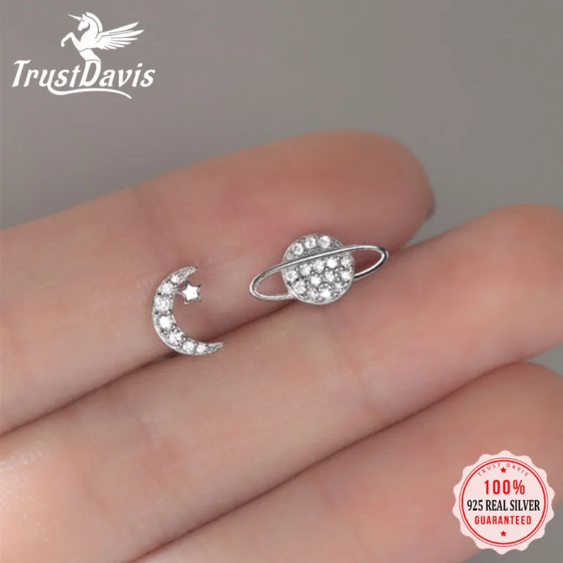 Trustdavis Real S925 женские серебряные серьги Корейская версия с кристаллами планеты Звезды Луны тонкие ювелирные изделия DB1305