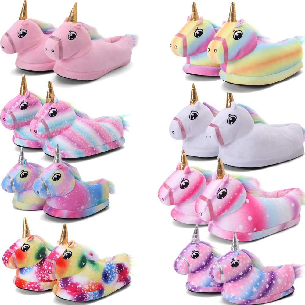 Зимние теплые плюшевые тапочки с единорогом для детей, Симпатичные ...